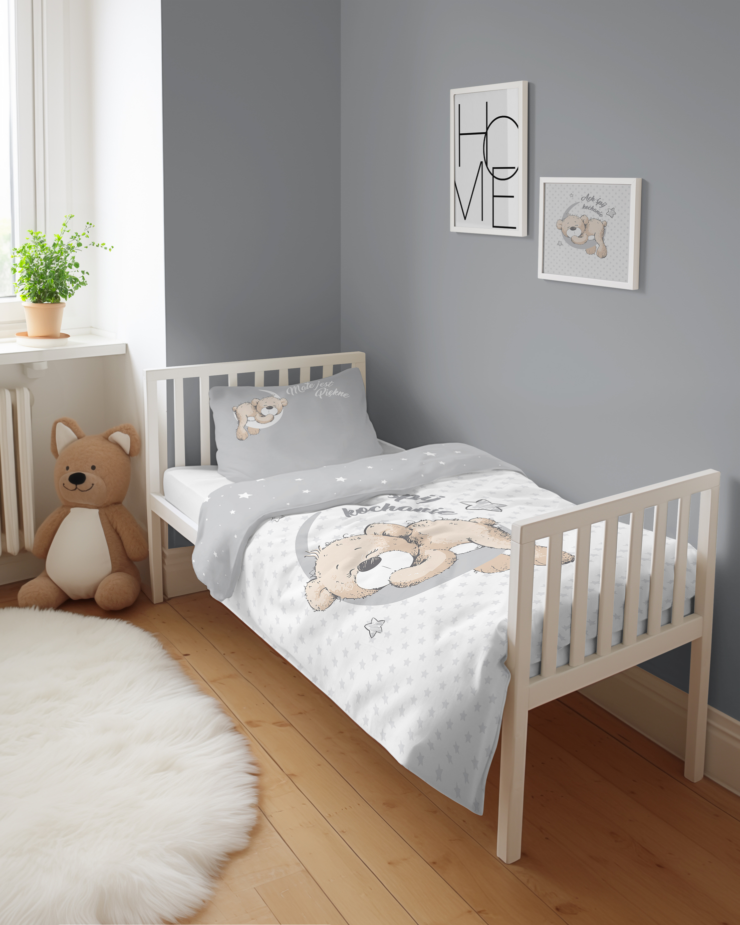 Kolorowy nadruk na pościeli wprowadzi do sypialni przyjazną atmosferę i pozwoli dziecku cieszyć się spokojnym snem. Dodatkowo wzór pościeli jest dwustronny więc możemy wybrać w jaki sposób zaaranżujemy sypialnie. Pościel dla dzieci do łóżeczka 100x135 zapinana jest na bezpieczny i atestowany zamek błyskawiczny, który ułatwia i przyspiesza wymianę pościeli.
