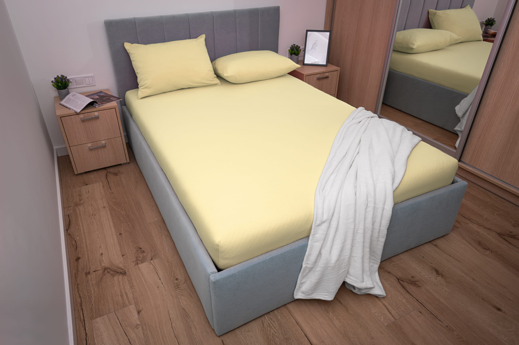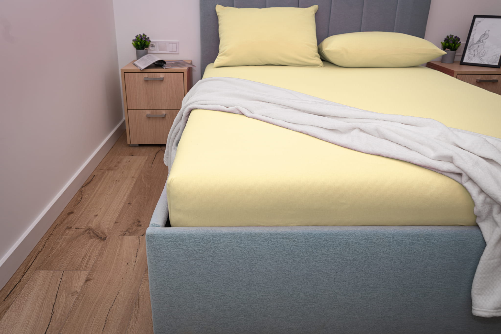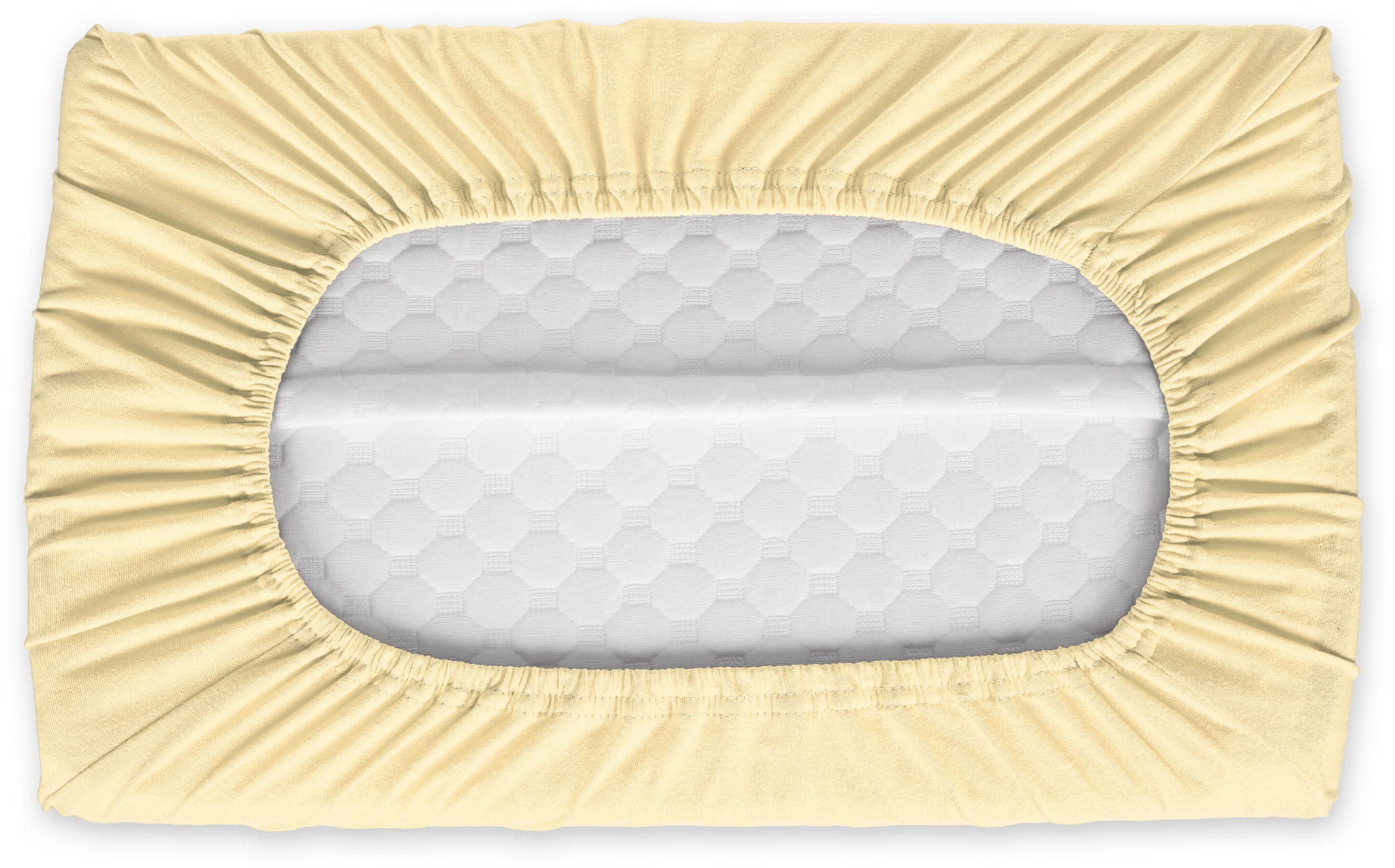 Prześcieradło jersey z gumką w kolorze bananowym wykonane zostało z materiału jersey z wysokiej jakości przędzy czesanej składającej się w 100% z bawełny. Dzięki wykonaniu z naturalnych włókien bawełnianych prześcieradło bardzo dobrze reguluje temperaturę ciała co zapobiega nadmiernemu poceniu się skóry. Prześcieradło jersey z gumką charakteryzuje się wykorzystaniem przędzy czesanej czyli najbardziej ekskluzywnej dostępnej na rynku o gramaturze 155 g/m² która sprawia że prześcieradło jest gładkie, miękkie i aksamitne w dotyku.