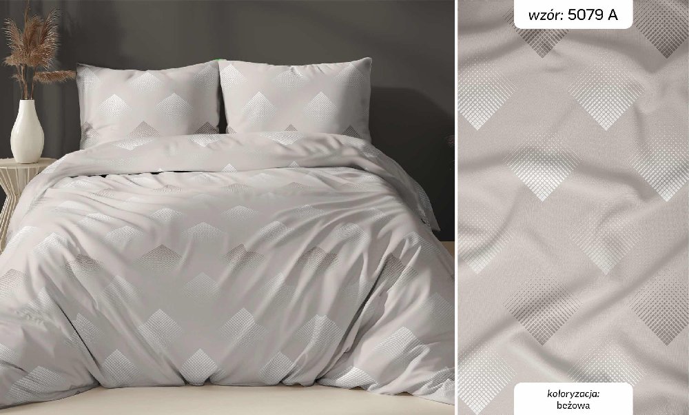 Pościel satynowa 5079A wykonana została w 100% z naturalnej bawełny dzięki czemu jest delikatna i miła w dotyku. Satynowy splot włókien sprawia, że tkanina posiada delikatny połysk, który jest charakterystyczny dla tego rodzaju pościeli. Gramatura tkaniny to 120 g/m² dzięki czemu pościel jest lekka, przyjemna i szybko schnie. Ta kolekcja pościeli do sypialni odznacza się nowoczesnym wzornictwem i bogatą kolorystyką dlatego będzie pasowała zarówno do nowoczesnych jak i klasycznych sypialni. Pościel wykonana z włókien bawełnianych gwarantuje nam wysoki komfort snu oraz bardzo dobrą cyrkulację powietrza dlatego idealnie sprawdzi się dla osób, które szukają luksusu oraz oczekują komfortowego i zdrowego snu. Dokładne wykończenie w polskiej szwalni oraz estetyczne opakowanie składa się na wysoką jakość produktu. Komplet pościeli zapinany jest na bezpieczny i atestowany zamek błyskawiczny. Komplet bielizny pościelowej może okazać się świetnym pomysłem na prezent.