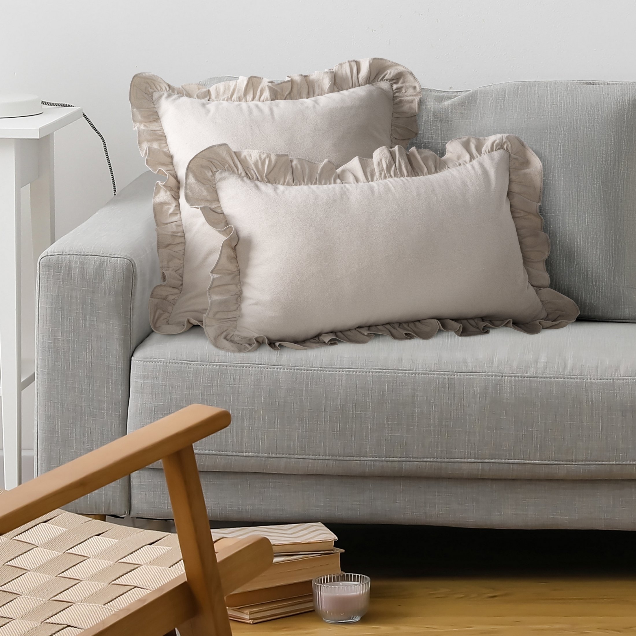 Piękna poszewka bawełniana z falbanką 30x50 w kolorze beżowym na poduszkę to doskonały wybór dla osób, które cenią naturalne tkaniny i subtelne dodatki we wnętrzu