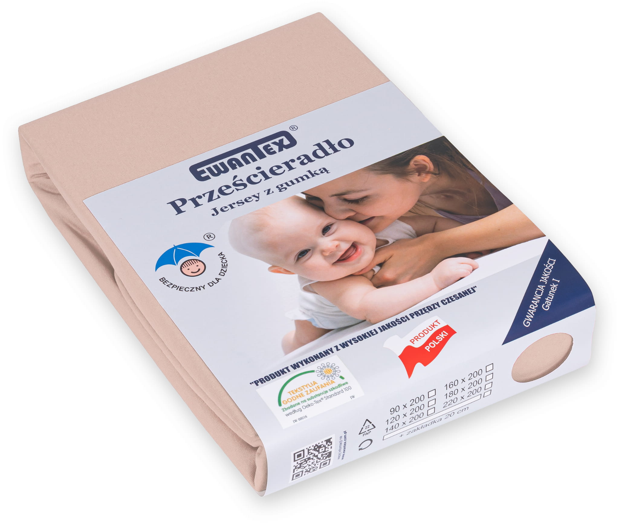 Prześcieradło z gumką idealnie pasuje na materac o wysokości do 20 cm lub 30cm. Gumka została wszyta w tunelu, który został dokładnie obszyty 5 igłowym overlockiem co gwarantuje nam solidność i stabilność gumki podczas użytkowania. Dzianina do uszycia prześcieradła produkowana jest w Polsce i posiada Certyfikat Oeko-Tex Standard 100 co oznacza, że została przebadana i nie zawiera substancji szkodliwych dla człowieka oraz substancji powodujących alergie.