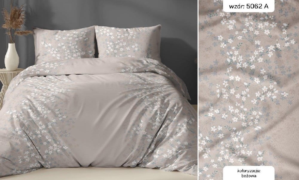 beżowe kwiatuszki pościel z satyny bawełnianej 5062A