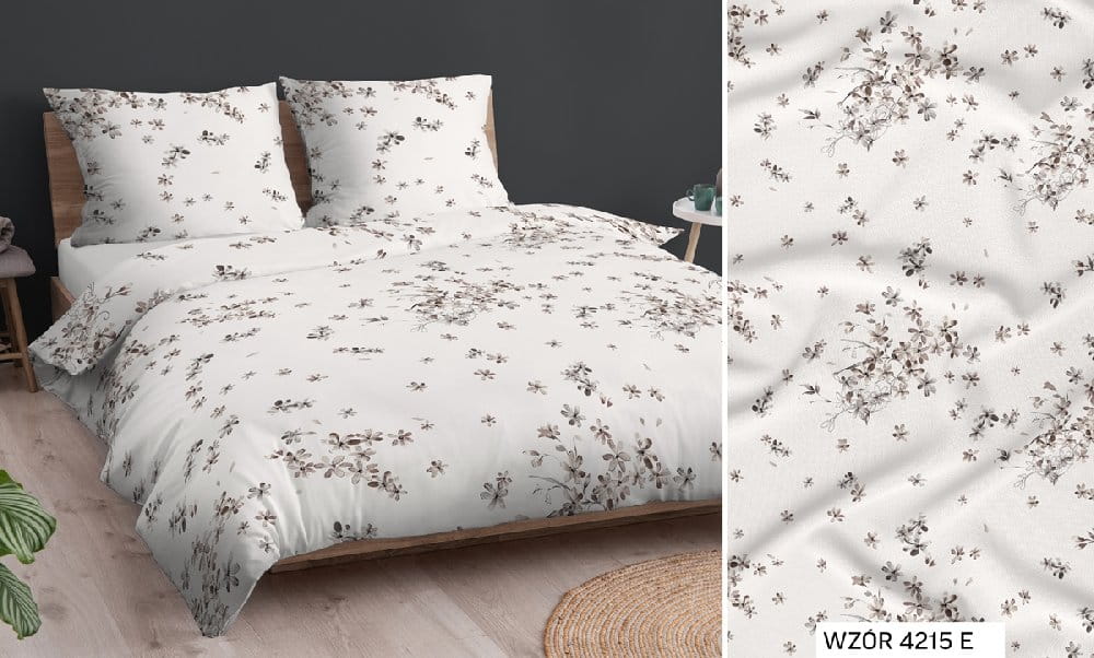 beżowe kwiaty pościel bawełniana PREMIUM POLSKA 160x200 4215E