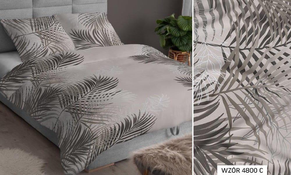 beżowe liście pościel z motywem florystycznym z satyny bawełnianej silver collection 4800C