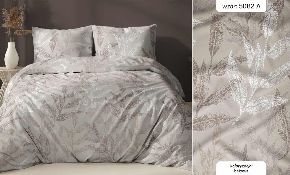 beżowe liście pościel z satyny bawełnianej 5082A