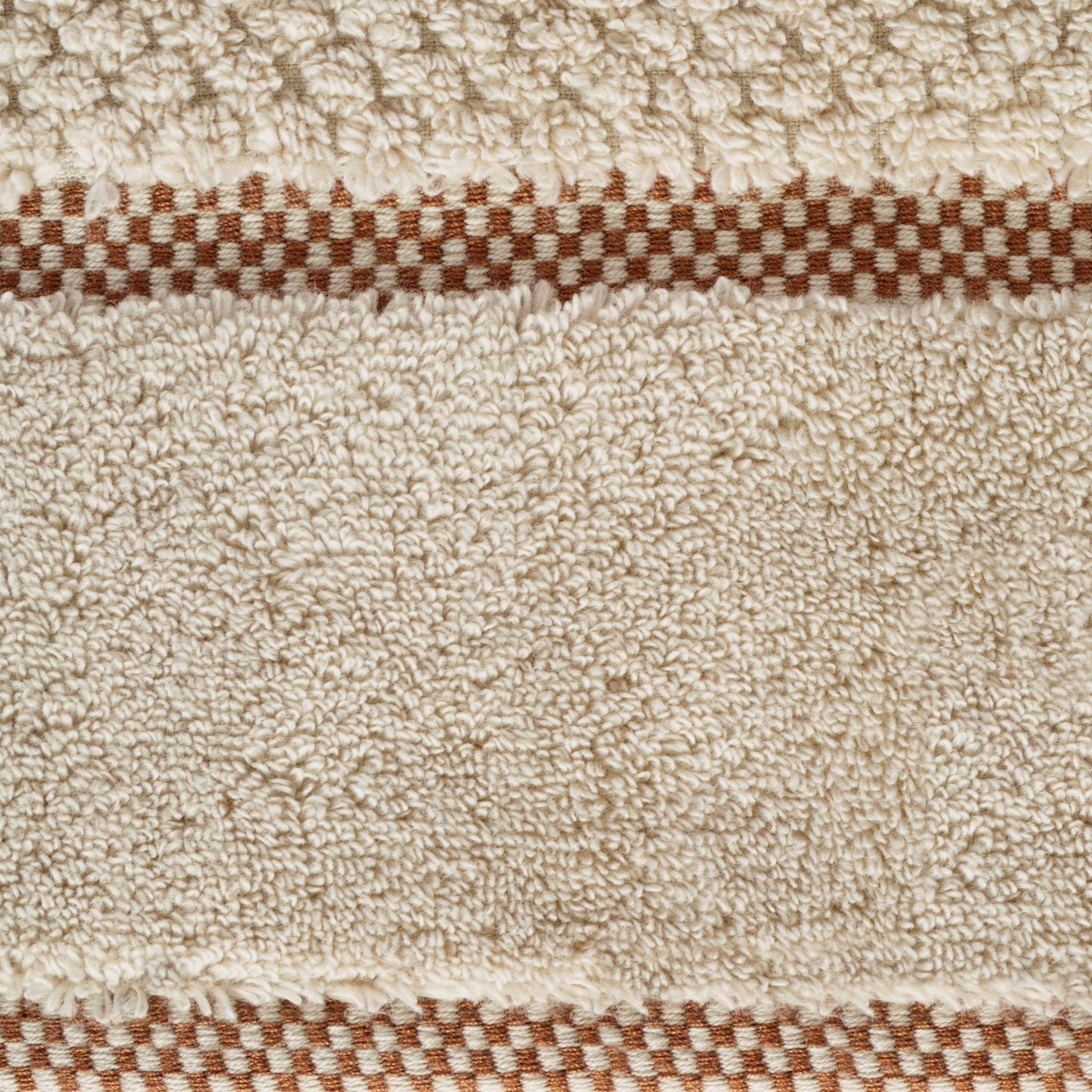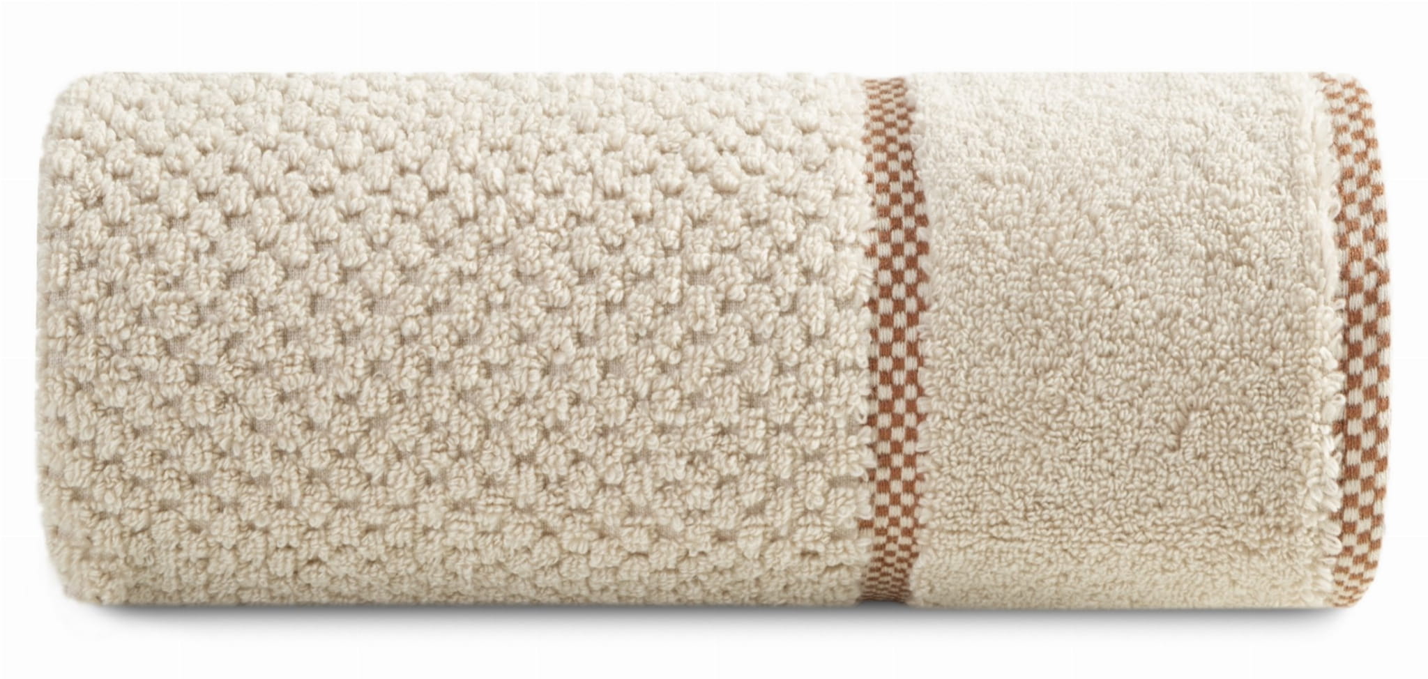 Ręcznik bawełniany Caleb w kolorze beżowym został wyprodukowany przez znaną i cenioną markę Eurofirany i plasowany jest w kolekcji PREMIUM. Wykonany jest z najbardziej luksusowych włókien bawełny premium na świecie. Wysokojakościowa bawełna czesana o nazwie ring-spun zapewnia jedwabistą delikatność, wysoką trwałość oraz wysoką chłonność czyli to co w ręczniku cenimy najbardziej. Charakteryzuje się wysoką i pożądaną w segmencie ręczników PREMIUM gramaturą o wartości 540 g/m². Elegancka i gustowna część ozdobna z dodatkiem przeszyć na wzór szachownicy świetnie odnajdzie się w nowoczesnych i gustownych wnętrzach tym bardziej, że ręcznik występuje w różnorodnej kolorystyce. Ręczniki premium z pewnością zadowolą klientów szukających najwyższej jakości produktów w połączeniu z nowoczesnym i eleganckim designem.