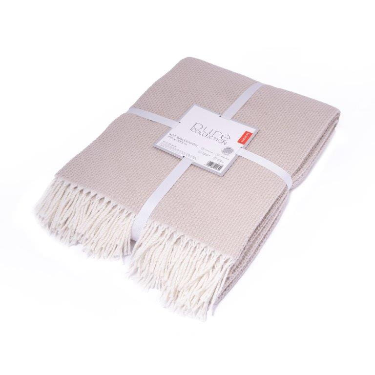 beżowy koc bawełniano akrylowy 220x200 z frędzlami pure collection DETEXPOL