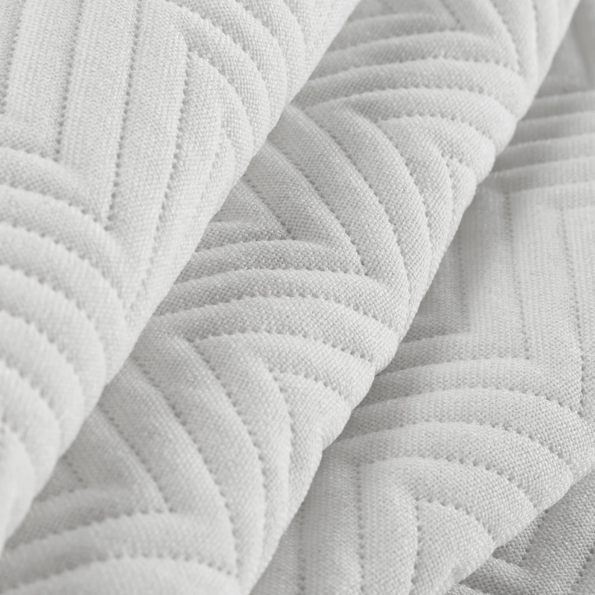 Narzuta pikowana na łóżko Len 3 200x220 w kolorze białym została wykonana na zlecenie firmy Eurofirany z 100% poliestru. Pełni ona nie tylko funkcję dekoracyjną w naszej sypialni elegancko prezentując się na łóżku, ale jednocześnie zabezpiecza pościel przed wybrudzeniem. Narzuta została starannie wykonana i ma jednobarwny kolor oraz posiada imitację lnu a na brzegach obszyta jest lamówką. Eleganckie pikowanie w jodełkę zostało wykonane metodą hot press czyli bez użycia nici i igieł dlatego jej powierzchnia jest miła i przyjemna w dotyku. Pikowanie za pomocą termo-zgrzewania ma wiele zalet a największym plusem jest powstanie trwałego materiału o dużej wytrzymałości.