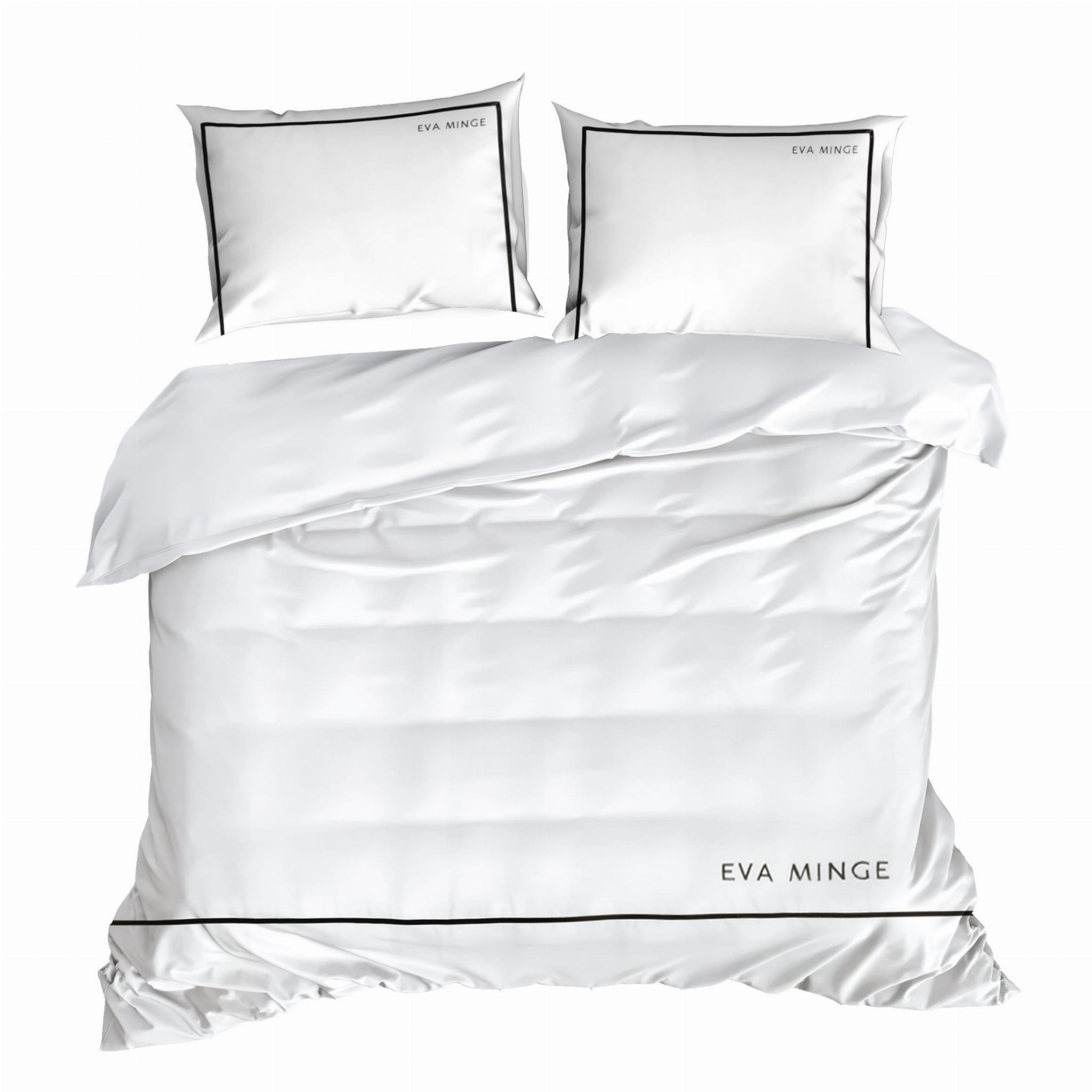 Biała pościel z makosatyny 160x200 z kolekcji Premium została zaprojektowana przez znaną projektantkę światowej sławy Ewę Minge. Pościel Eva jest owocem współpracy z firmą Eurofirany. Ta kolekcja pościeli to uwieńczenie wielu lat wspólnych projektów i wzorów. Została wykonana w Hiszpanii z lekkiej i delikatnej w dotyku najwyższej jakości satyny bawełnianej czyli makosatyny. Biała poszwa i poszewki zostały ozdobione czarnym nadrukiem z imieniem sławnej projektantki. Całość robi niesamowite wrażenie i sprawia, że mamy do czynienia z produktem ekskluzywnym i nietuzinkowym. Cały komplet jest dokładnie wykończony i ładnie zapakowany. Satynowa konstrukcja włókien sprawia, że tkanina posiada delikatny połysk, który jest charakterystyczny dla tego rodzaju pościeli. Gramatura tkaniny to 125 g/m² dzięki czemu pościel jest lekka, przyjemna i delikatna w dotyku. Dokładne wykończenie oraz estetyczne opakowanie składa się na wysoką jakość produktu. Komplet pościeli zapinany jest na bezpieczny i atestowany zamek błyskawiczny i może okazać się świetnym pomysłem na prezent.