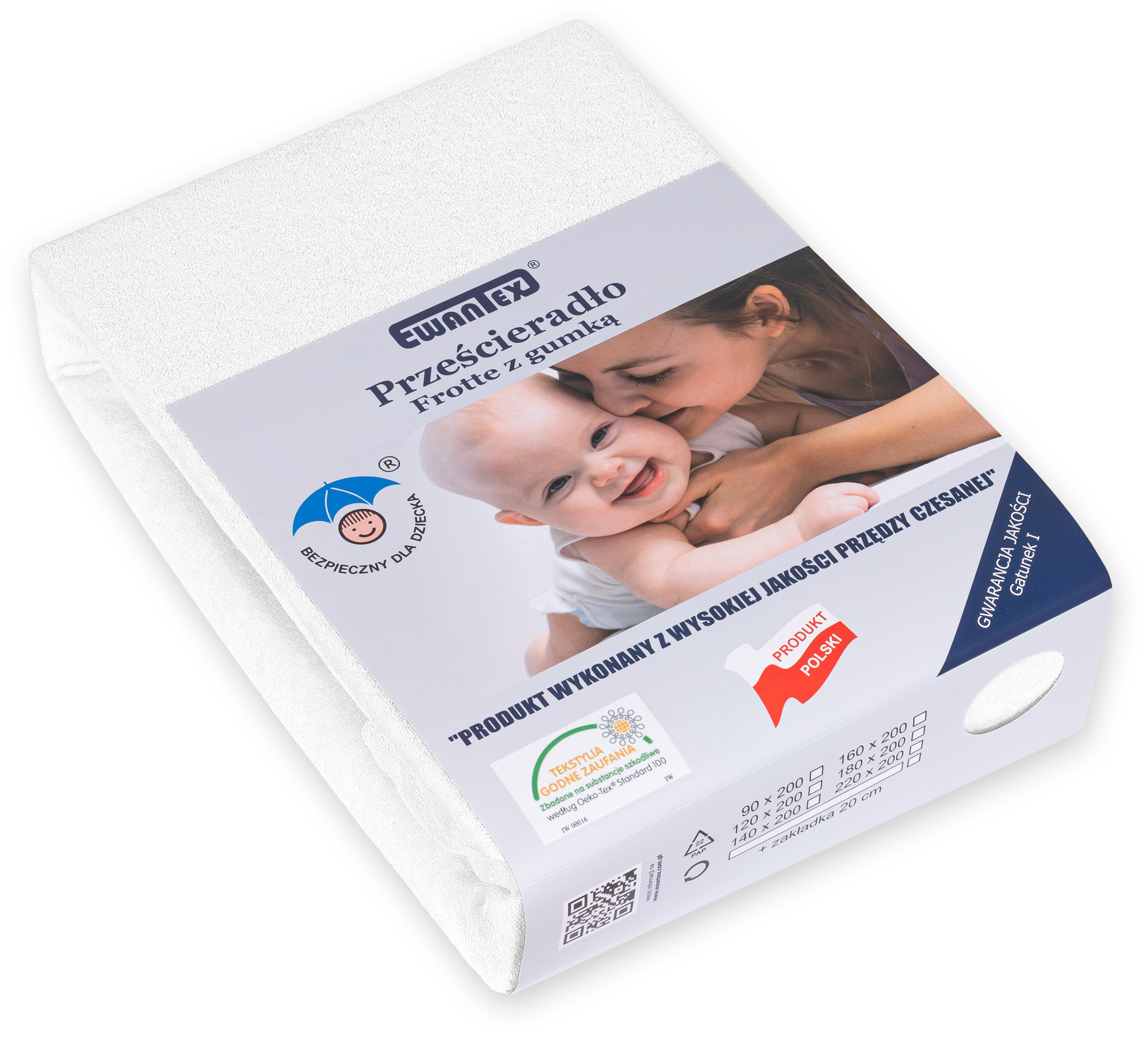 Prześcieradło z gumką idealnie pasuje na materac o wysokości do 17 cm. Gumka została wszyta w tunelu, który został dokładnie obszyty 5 igłowym overlockiem co gwarantuje nam solidność i stabilność gumki podczas użytkowania. Dzianina do uszycia prześcieradła produkowana jest w Polsce i posiada Certyfikat Oeko-Tex Standard 100 co oznacza, że została przebadana i nie zawiera substancji szkodliwych dla człowieka oraz substancji powodujących alergie.