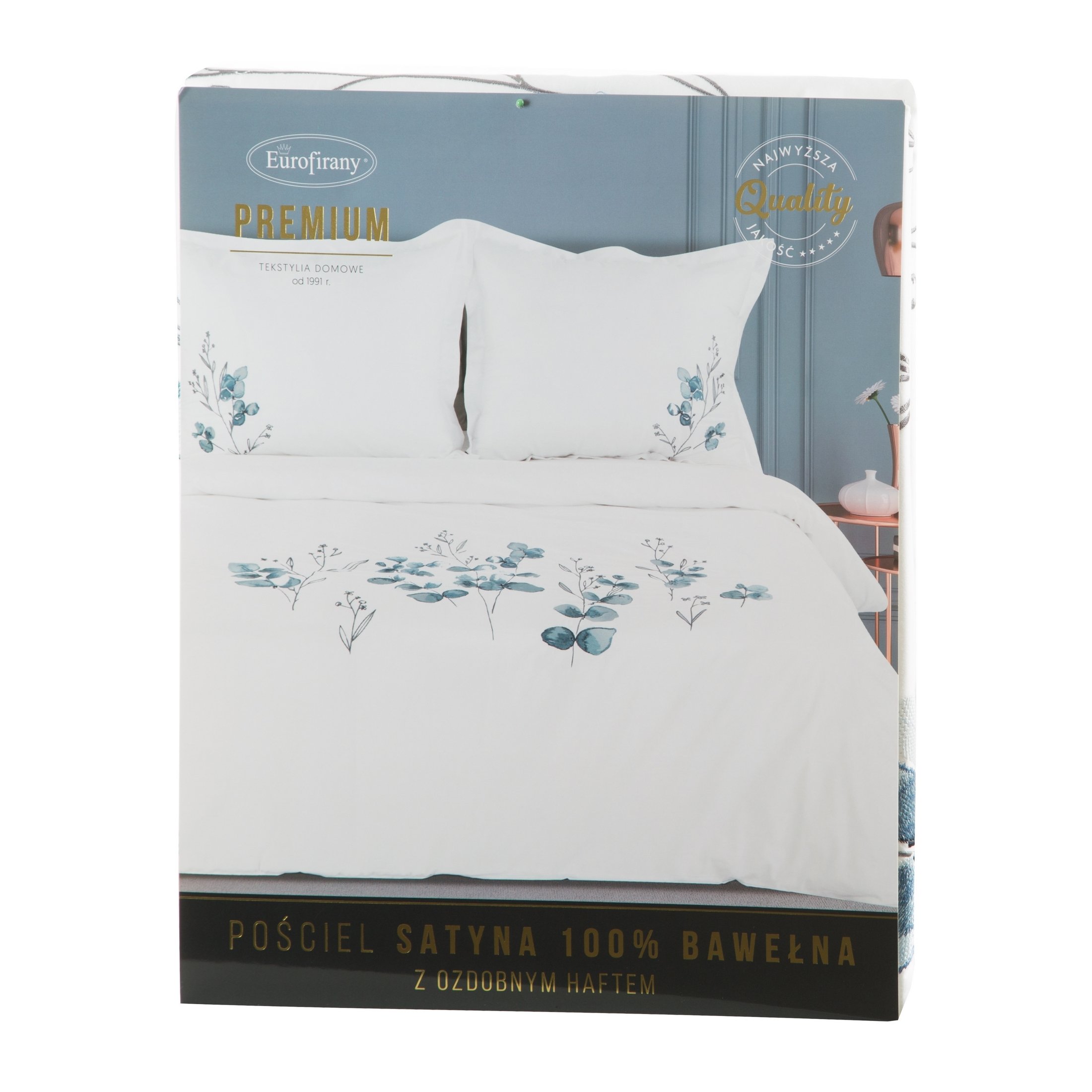 biało niebieska pościel haftowana 160x200 EUROFIRANY PREMIUM HAFT 11A EUROFIRANY