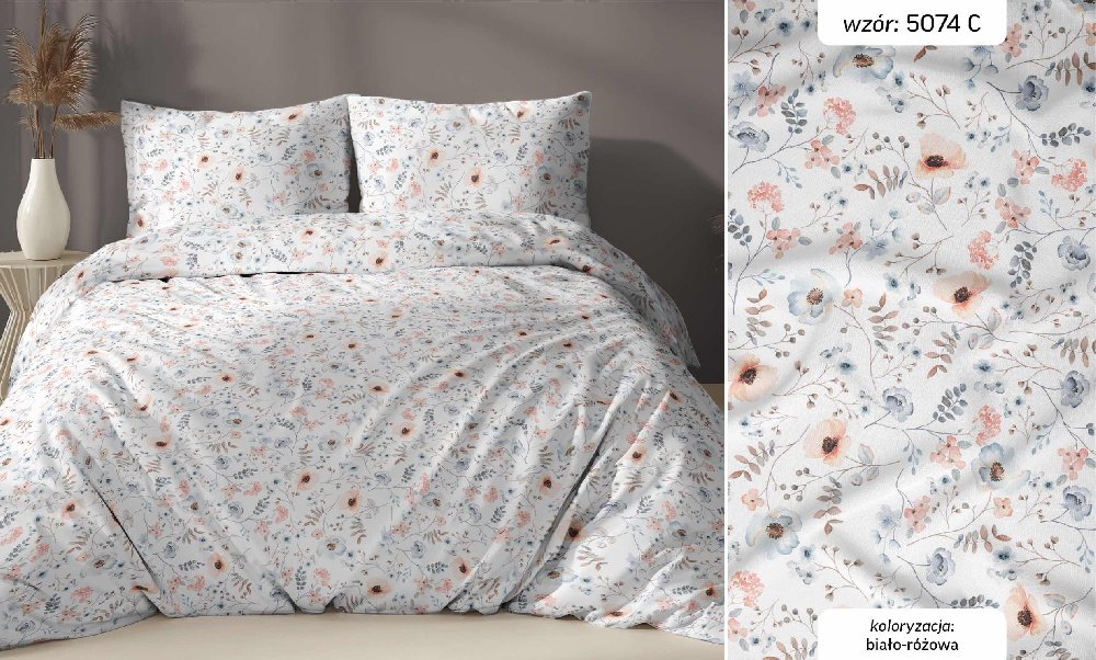 biało różowe kwiatki pościel z satyny bawełnianej 5074C