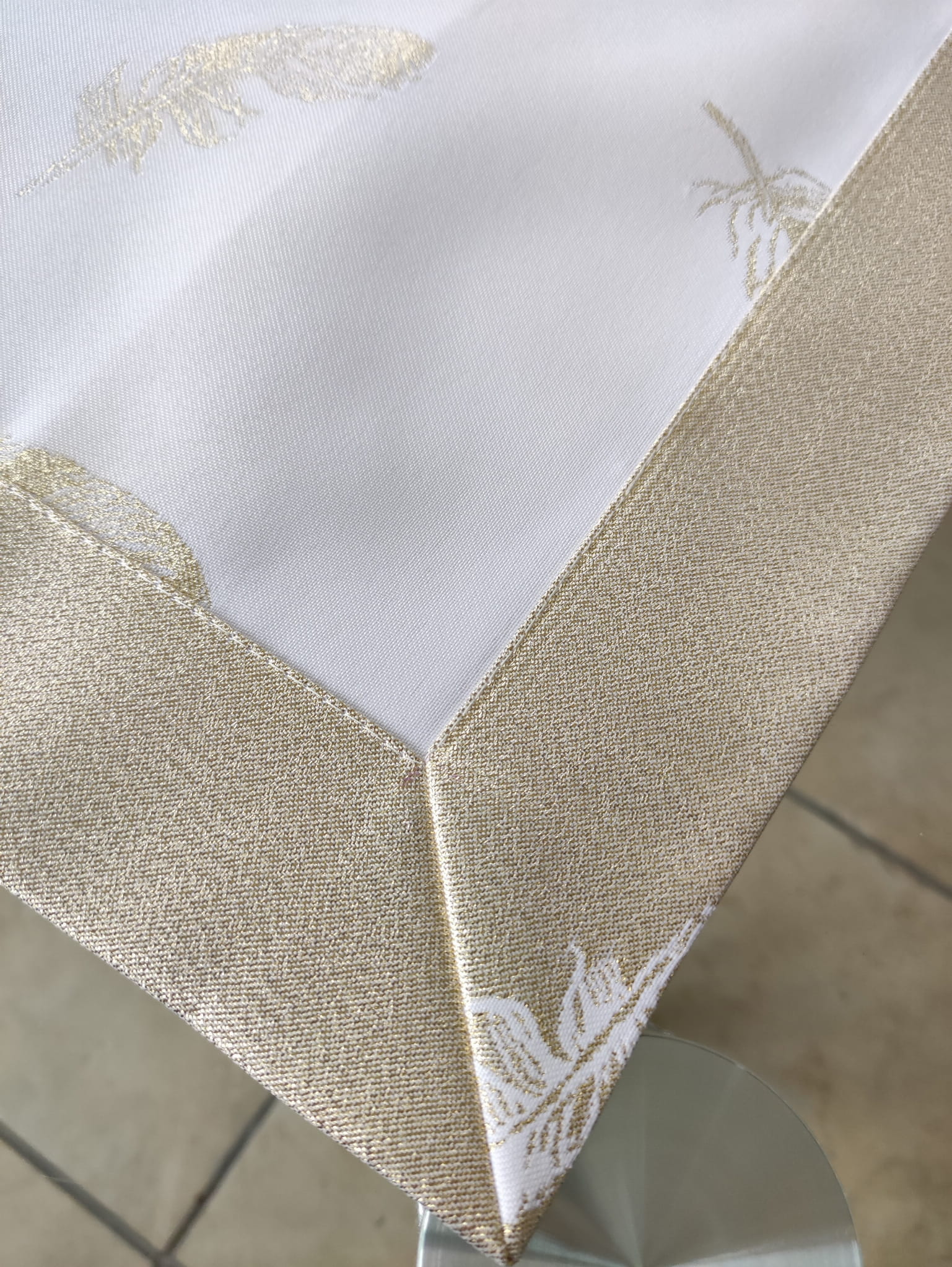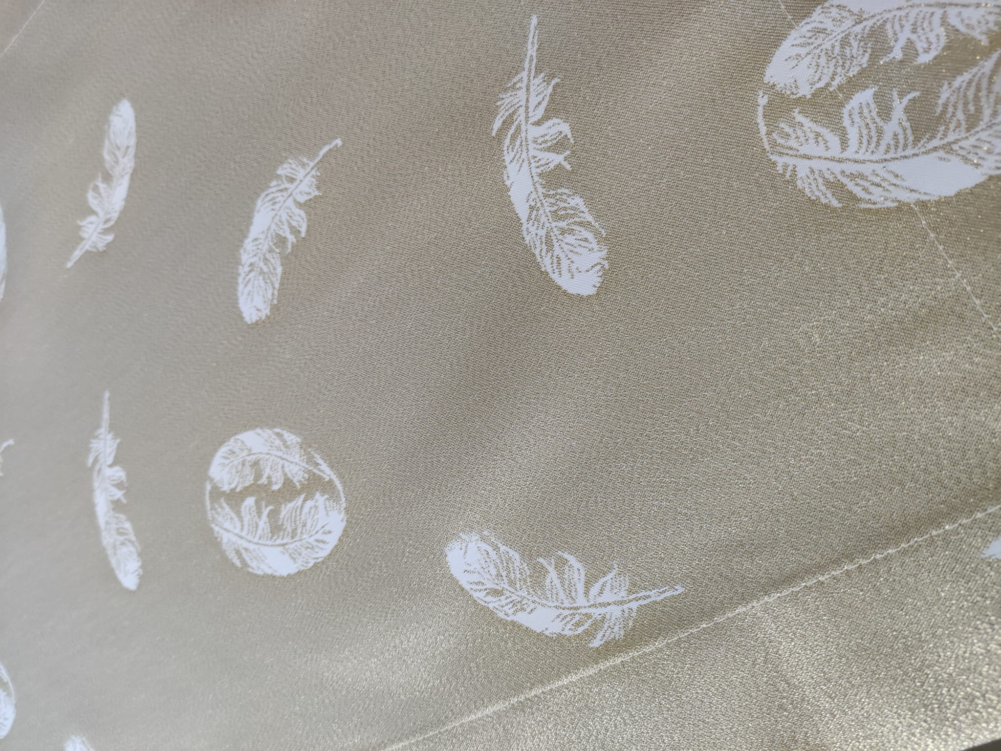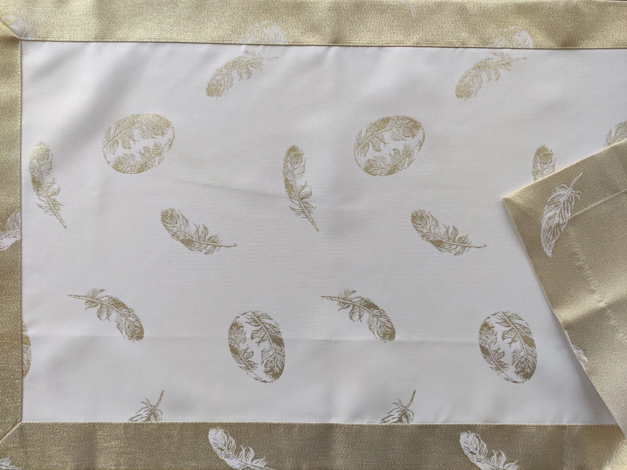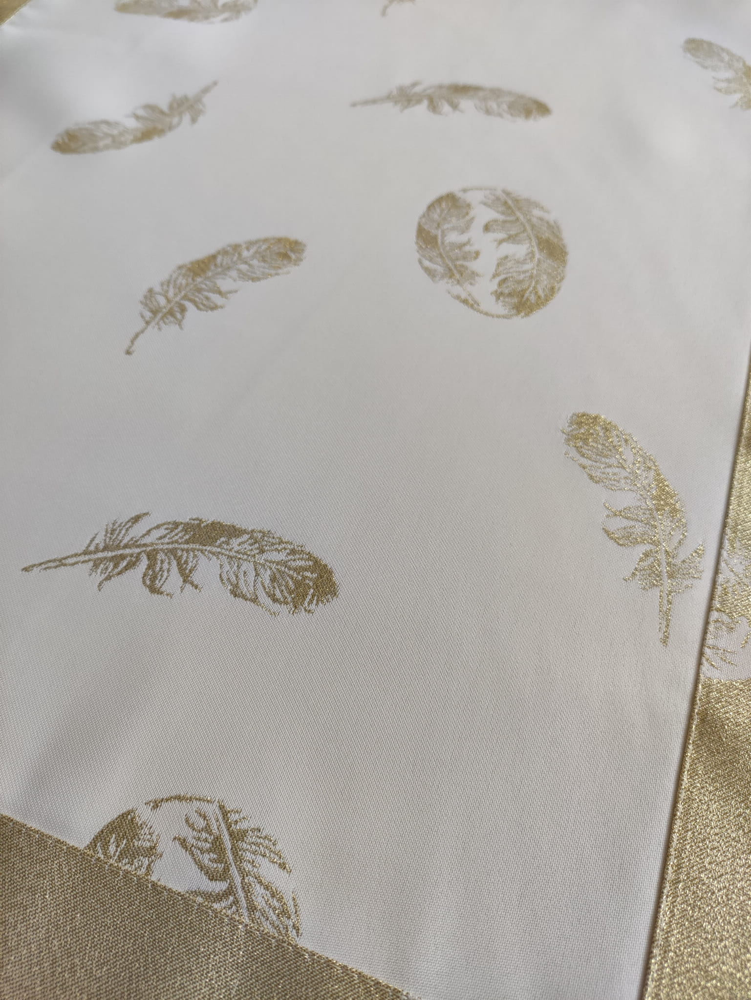 biało złoty obrus plamoodporny na wielkanoc piórka
