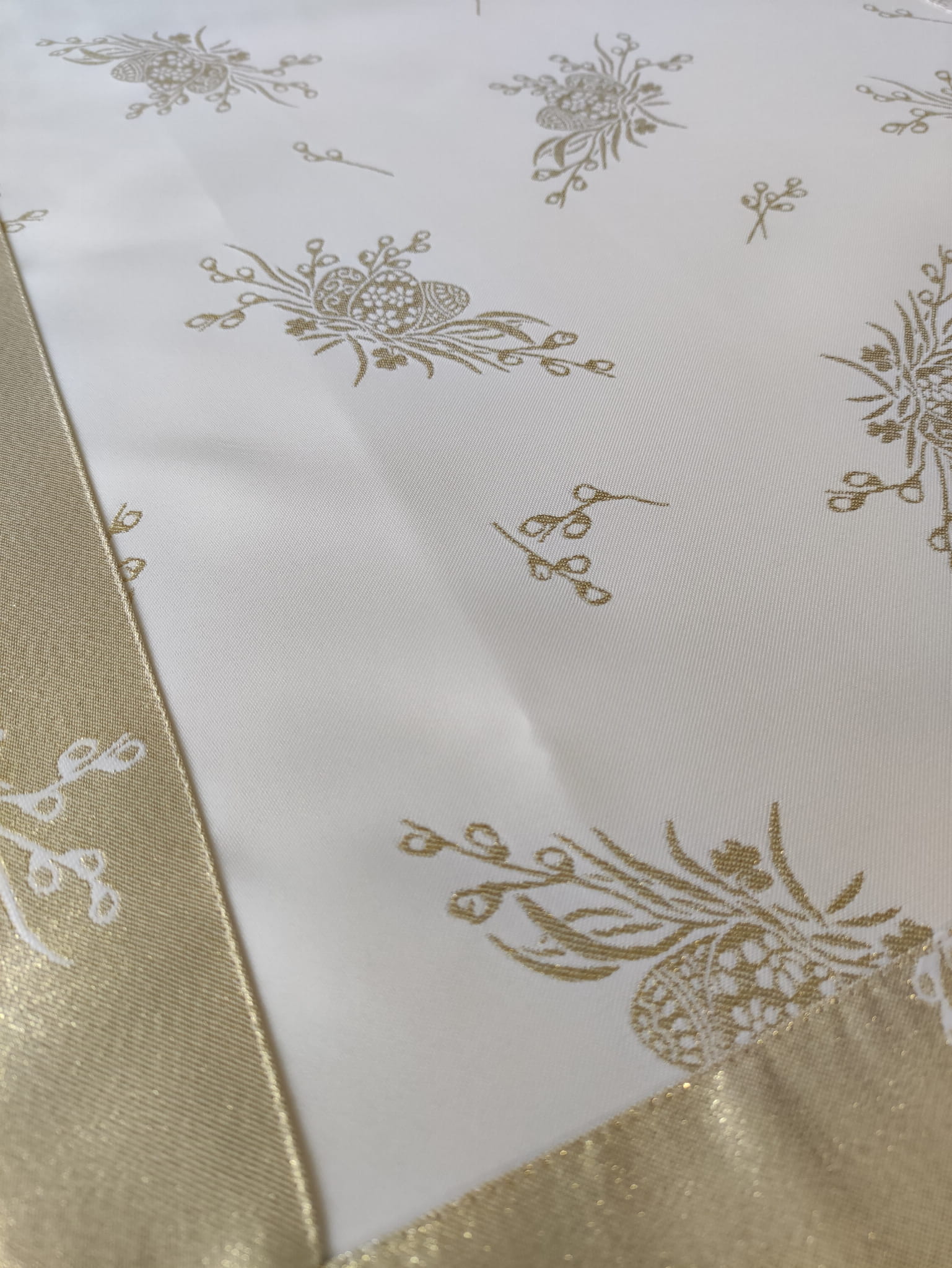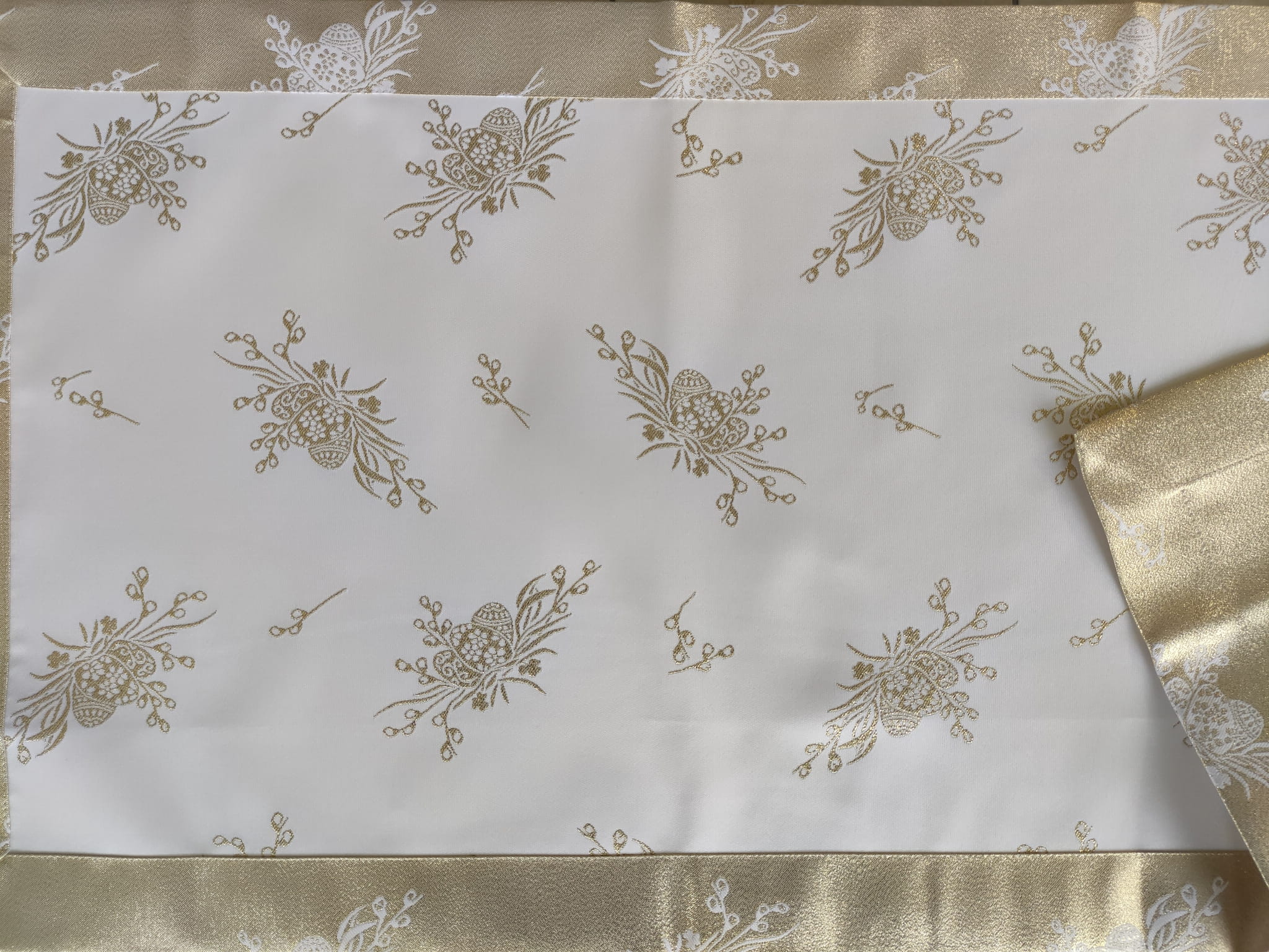 biało złoty obrus plamoodporny na wielkanoc święconka