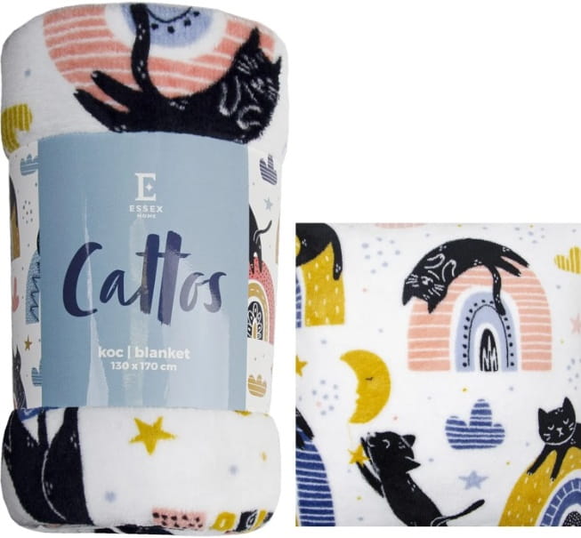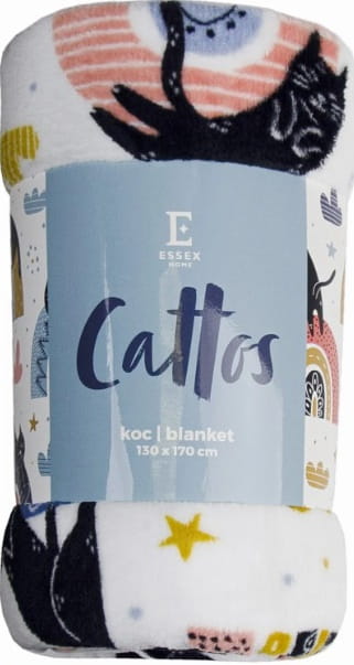 biały koc dziecięcy w kotki CATTOS 130x170 ESSEX