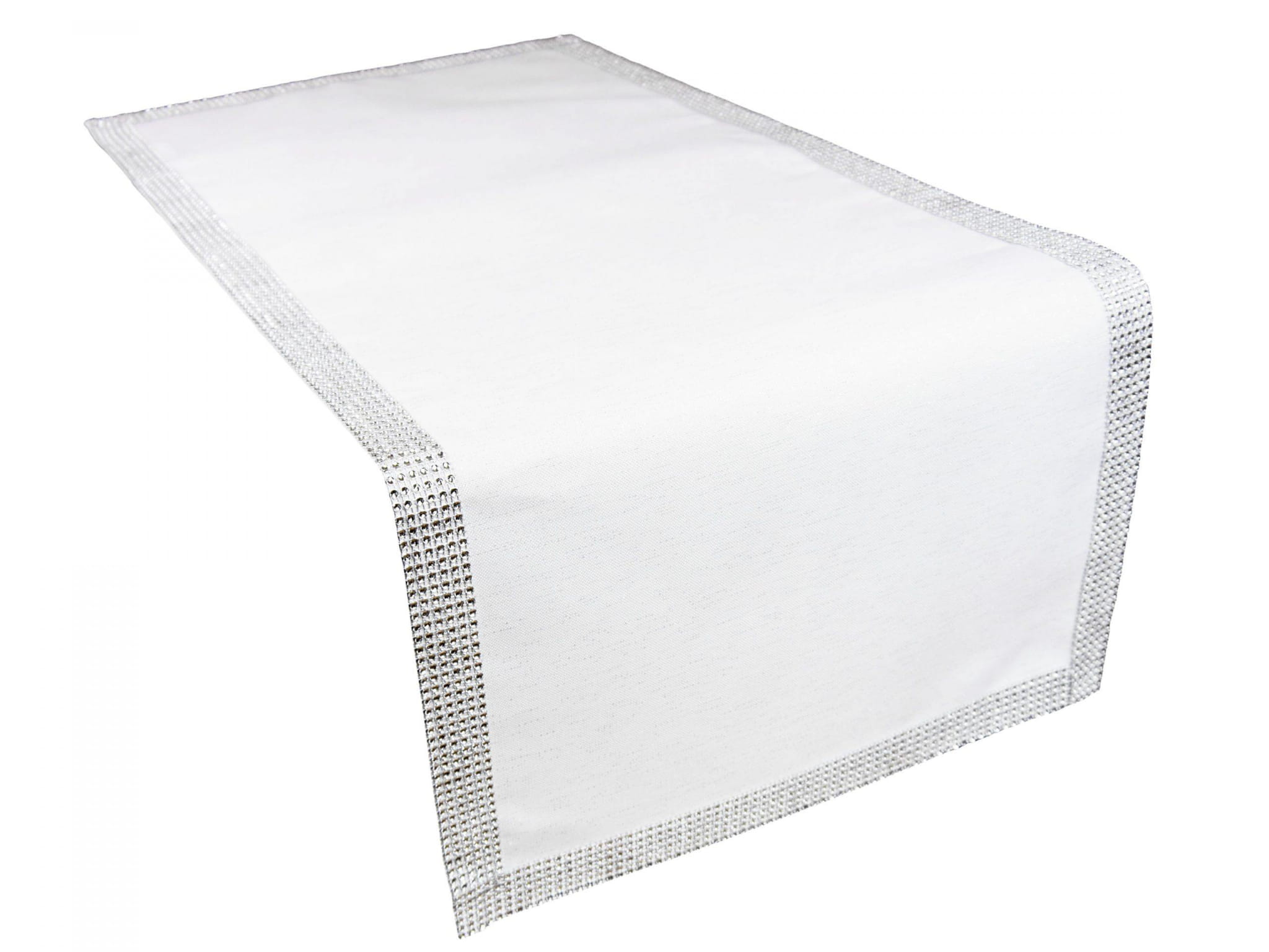 Rewelacyjny obrus 85x85 MARGO 921 w stylu GLAMOUR z cyrkoniami w kolorze białym.