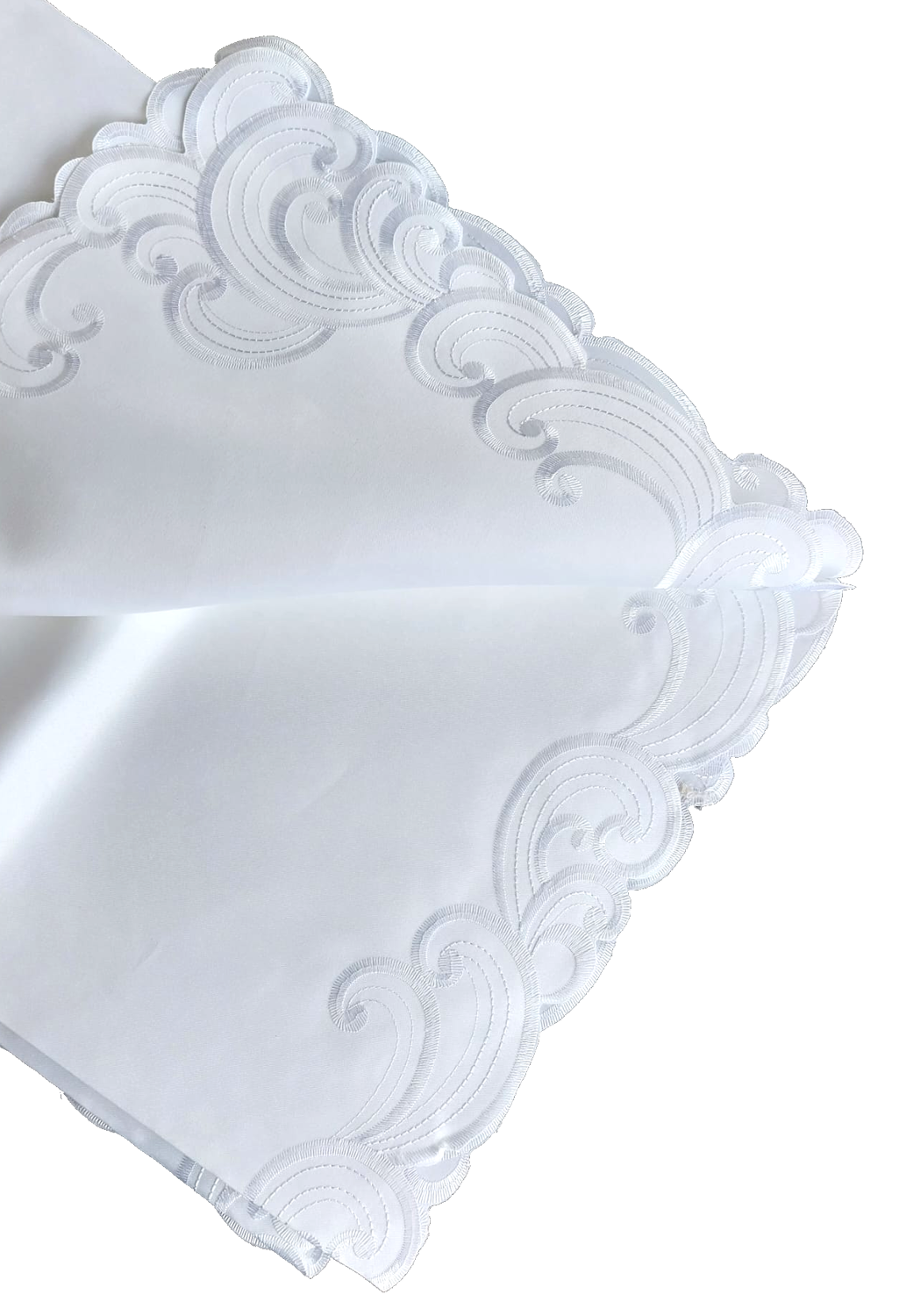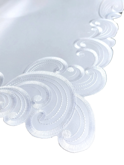 Obrus dekoracyjny haftowany 204 jest dopełnieniem i ozdobą każdego zastawionego stołu. Wykonany z precyzją świetnie wygląda i eksponuje każdą elegancką zastawę. Będzie się cudownie prezentował w tradycyjnych wnętrzach, jak i w nowocześnie urządzonych pomieszczeniach.