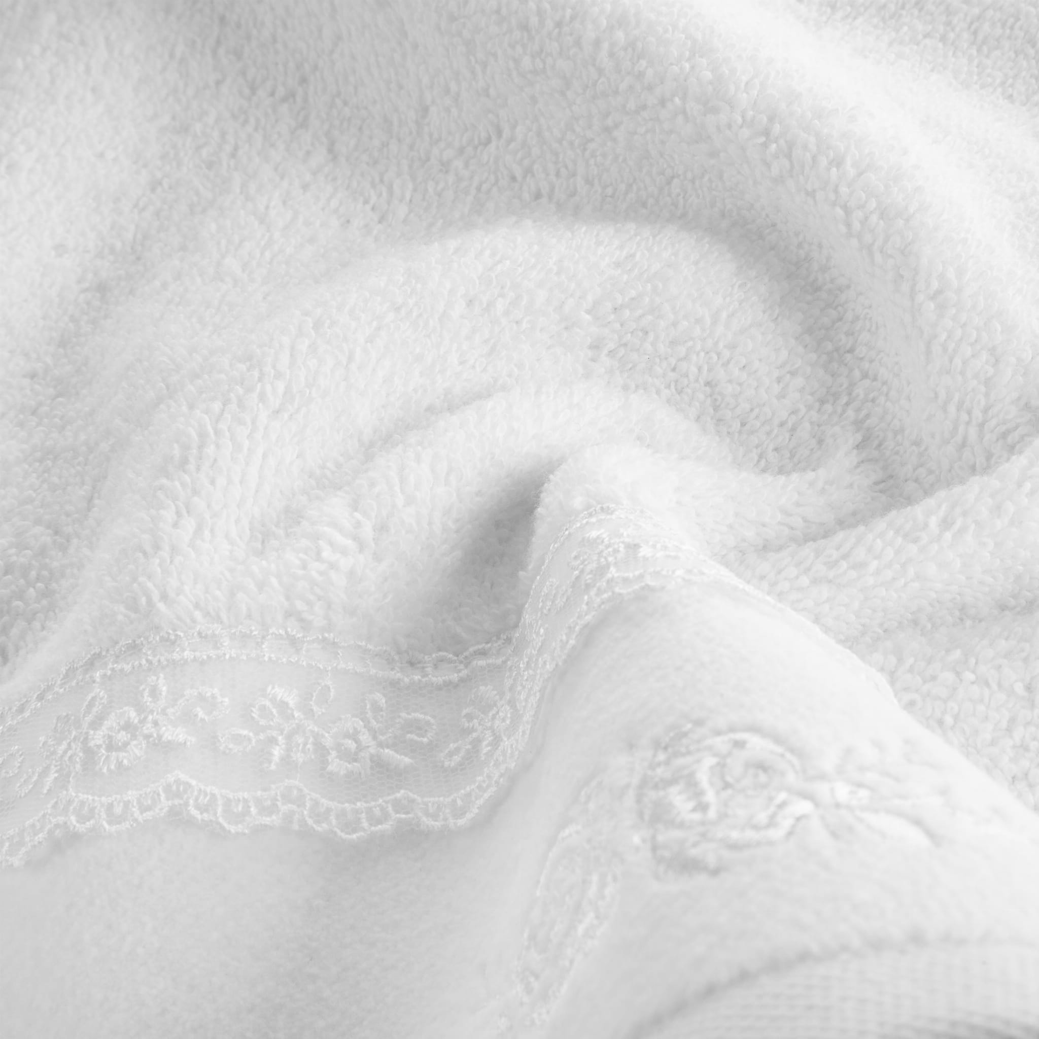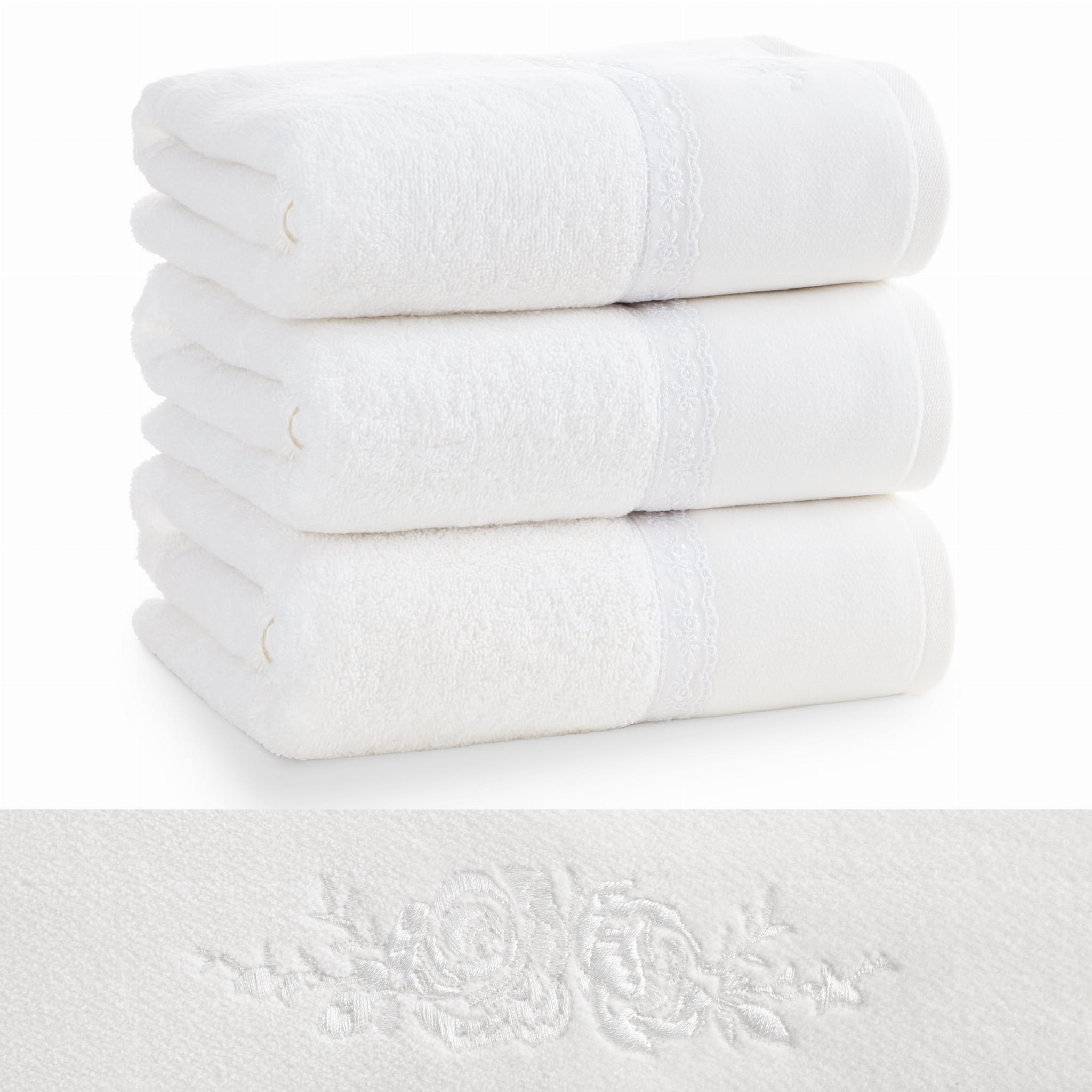 Ręcznik kąpielowy Sisi z piękną ozdobną koronką idealnie sprawdza się w roli ręcznika codziennego jak i dekoracyjnego. Dzianina frotte, z której został wyprodukowany ręcznik posiada Certyfikat Oeko-Tex Standard 100 co oznacza, że została przebadana i nie zawiera substancji szkodliwych dla człowieka oraz substancji powodujących alergie.