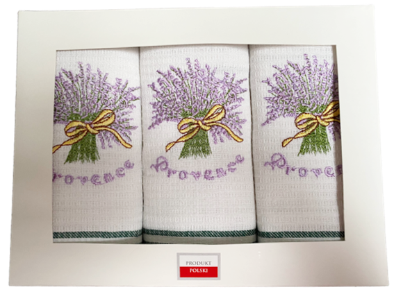 Zestaw 3 ścierek bawełnianych do kuchni z haftem Lawendy. Nowoczesne i ciekawe wzornictwo sprawdzi się w każdej kuchni, zarówno tej o klasycznym jak i nowoczesnym charakterze. Ściereczka została w całości uszyta oraz nadrukowana w Polsce. Dzięki wykonaniu ścierki ze 100% bawełny ściereczki dobrze chłoną wodę.