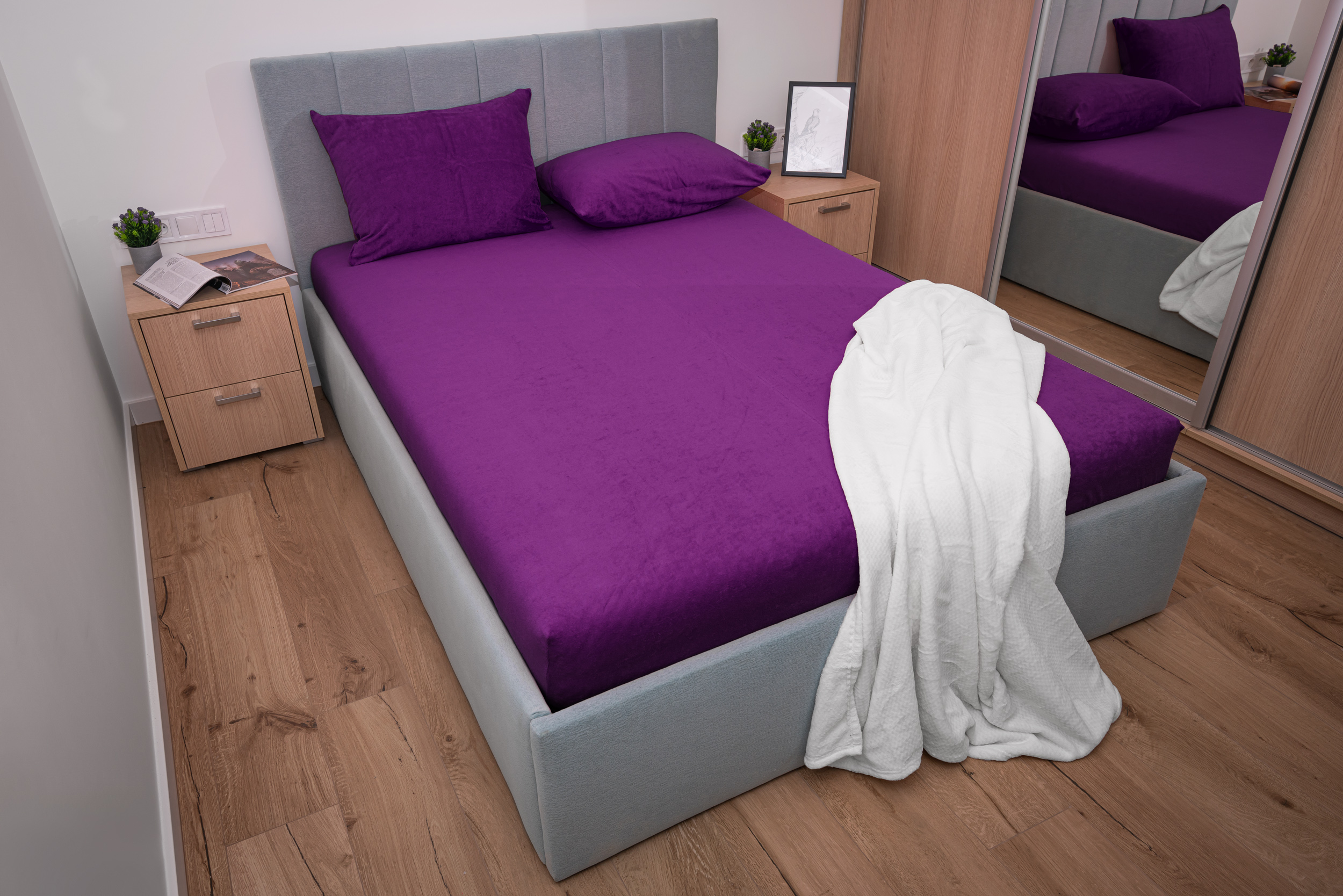 Prześcieradło frotte z gumką w kolorze ciemno fioletowym wykonane zostało z materiału frotte z wysokiej jakości przędzy czesanej. Dzianina składa się w 82% z bawełny i 18% z poliestru czyli tysięcy bawełnianych pętelek między którymi swobodnie przepływa powietrze. Taka proporcja bawełny do poliestru sprawia, że prześcieradło bardzo dobrze reguluje temperaturę ciała co zapobiega nadmiernemu poceniu się skóry a poliester gwarantuje ciągliwość i wytrzymałość oraz idealne dopasowanie do materaca. Prześcieradło frotte z gumką charakteryzuje się wykorzystaniem przędzy czesanej czyli najbardziej ekskluzywnej dostępnej na rynku o gramaturze 200g/m² która sprawia że prześcieradło jest grube, miękkie i przyjemne w dotyku.