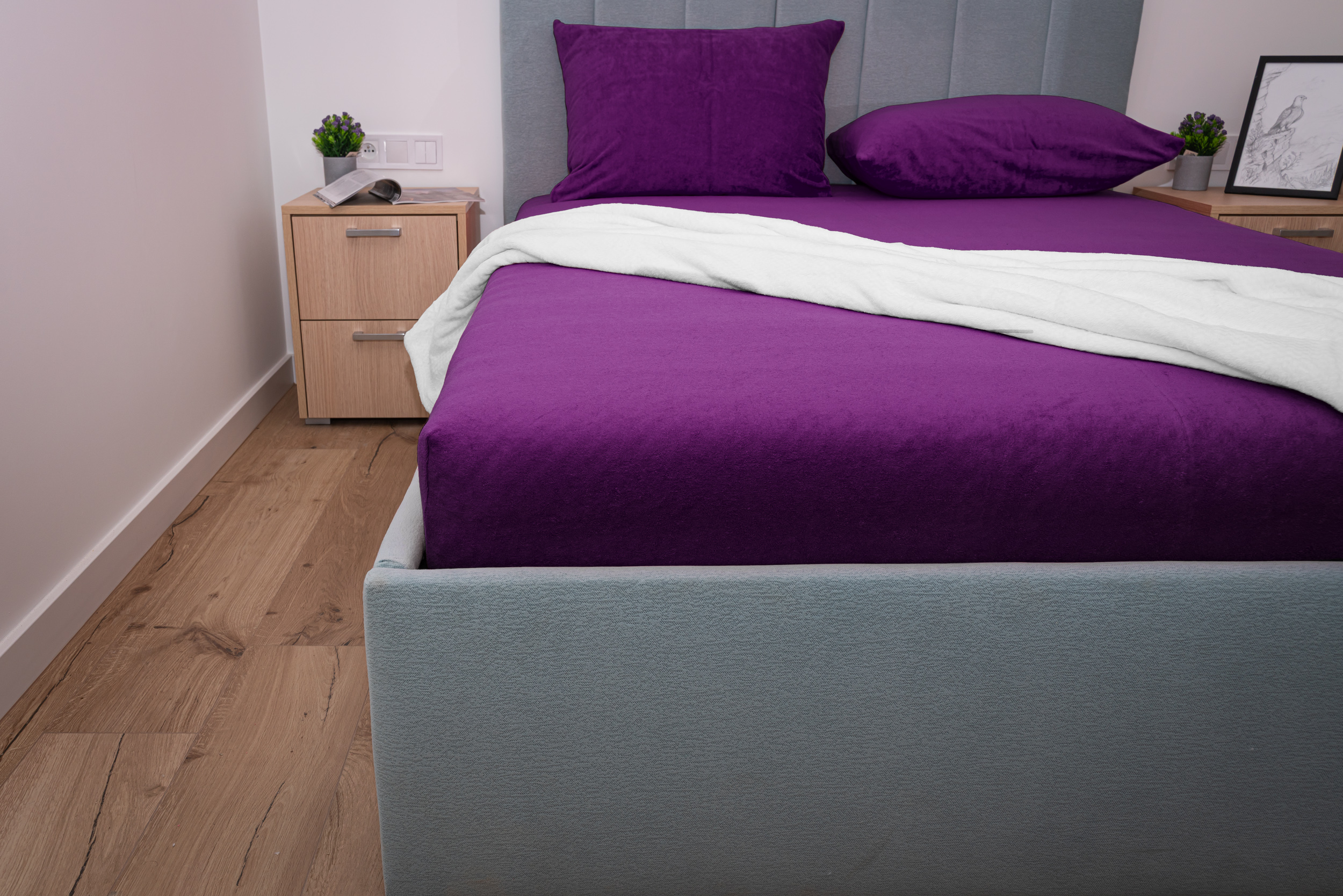 ciemno fioletowe PRZEŚCIERADŁO FROTTE Z GUMKĄ