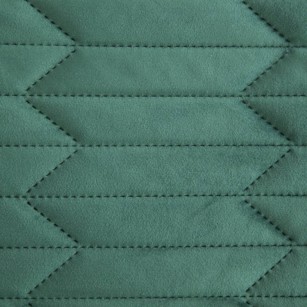 Ekskluzywna narzuta pikowana na łóżko Sofia 1 230x260 w kolorze ciemno zielonym została wykonana na zlecenie firmy Eurofirany z 100% poliestru. Pełni ona nie tylko funkcję dekoracyjną w naszej sypialni elegancko prezentując się na łóżku, ale jednocześnie zabezpiecza pościel przed wybrudzeniem. Narzuta została starannie wykonana i ma jednobarwny kolor oraz posiada delikatny połysk a na brzegach obszyta jest lamówką. Eleganckie pikowanie w dużą, gęstą jodełkę zostało wykonane metodą hot press czyli bez użycia nici i igieł dlatego jej powierzchnia jest miła i przyjemna w dotyku. Pikowanie za pomocą termo-zgrzewania ma wiele zalet a największym plusem jest powstanie trwałego materiału o dużej wytrzymałości.