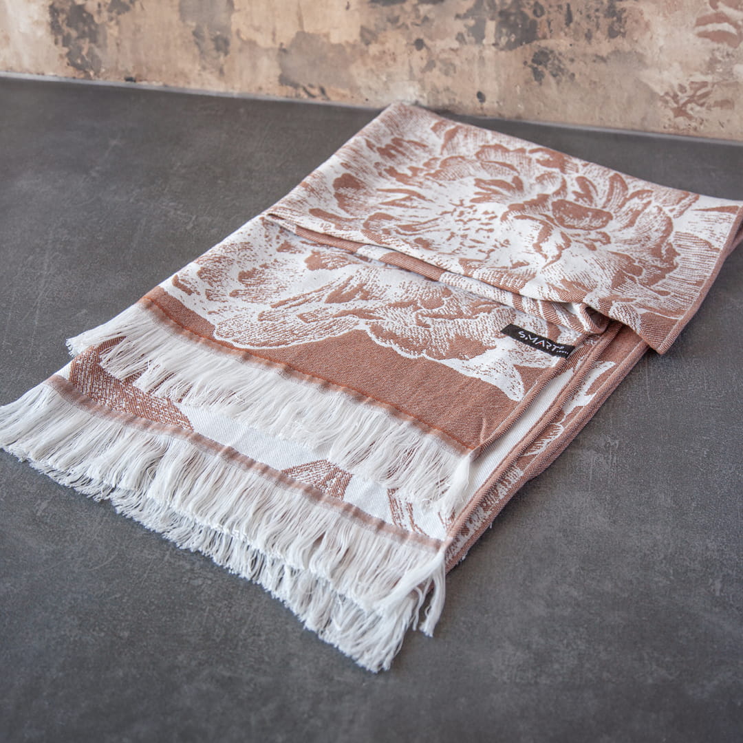 cynamonowy bambusowy ręcznik peonie z frędzlami smart towel 75x150 TEXPOL