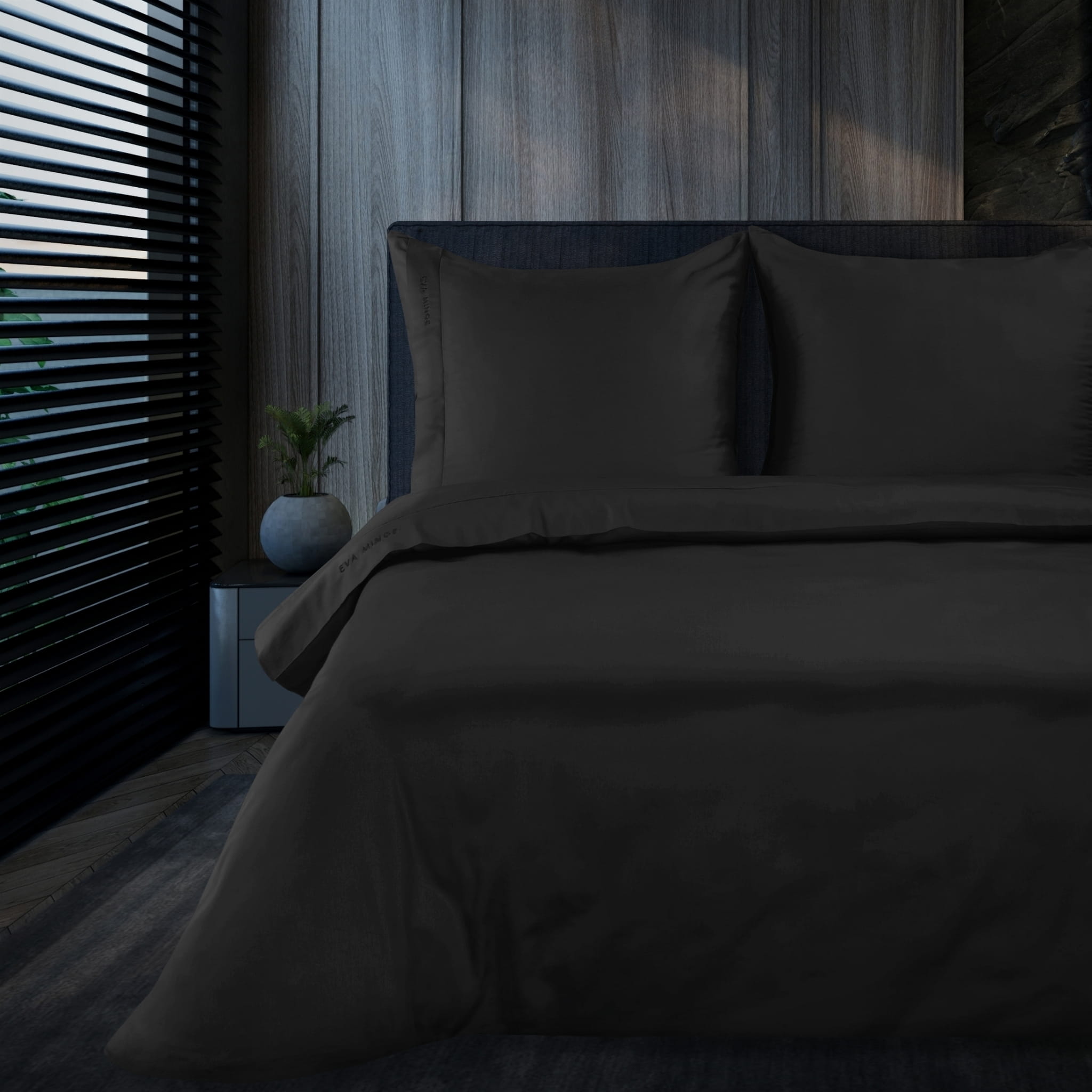 czarna pościel z makosatyny elegante EVA MINGE EUROFIRANY PREMIUM