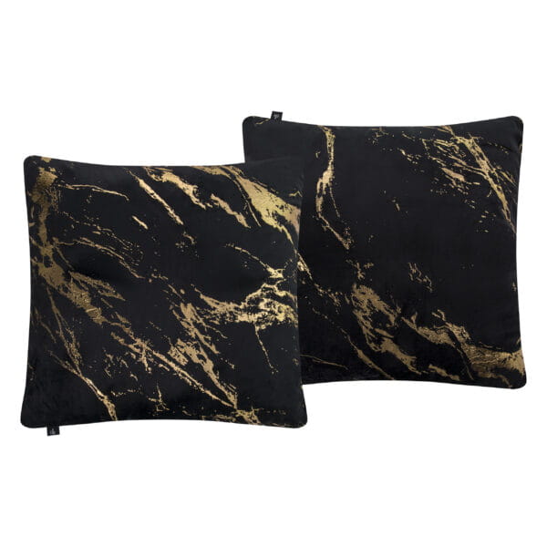 Poszewka dekoracyjna welwetowa Chic Home Endless w kolorze czarnym wykończona pięknym wzorem złotego marmuru na poduszkę w rozmiarze 45x45 cm została estetycznie wykonana z materiału składającego się z poliestru, dzięki czemu posiada bardzo intensywną barwę i jest niezwykle przyjemna w dotyku. Ze względu na wzór jest bardzo charakterystyczna i jest doskonałym wyborem dla odważnych miłośników ekskluzywnych dodatków. Produkt daje nam doskonałą możliwość szybkiej metamorfozy wystroju. Mięsistość i miękkość welwetu, który wciąż jest bardzo mocnym trendem w urządzaniu wnętrz, w połączeniu z głębią koloru pozwala uzyskać spektakularny efekt. Wykończona złotą lamówką.