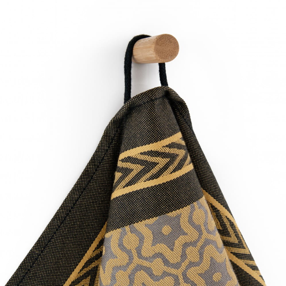 Ściereczka Marsala Gold w kolorze czarnym 50x70 to ukłon w stronę natury i jej najpiękniejszych barw. Wykonana w 100% z bawełny organicznej, z certyfikatem GOTS, jest nie tylko przyjemna w dotyku, ale także trwała i przyjazna dla środowiska. Żakardowy splot sprawia, że wzór pozostaje wyrazisty przez długi czas, a gramatura 240 g/m² zapewnia świetną chłonność i wytrzymałość w codziennym użytkowaniu.