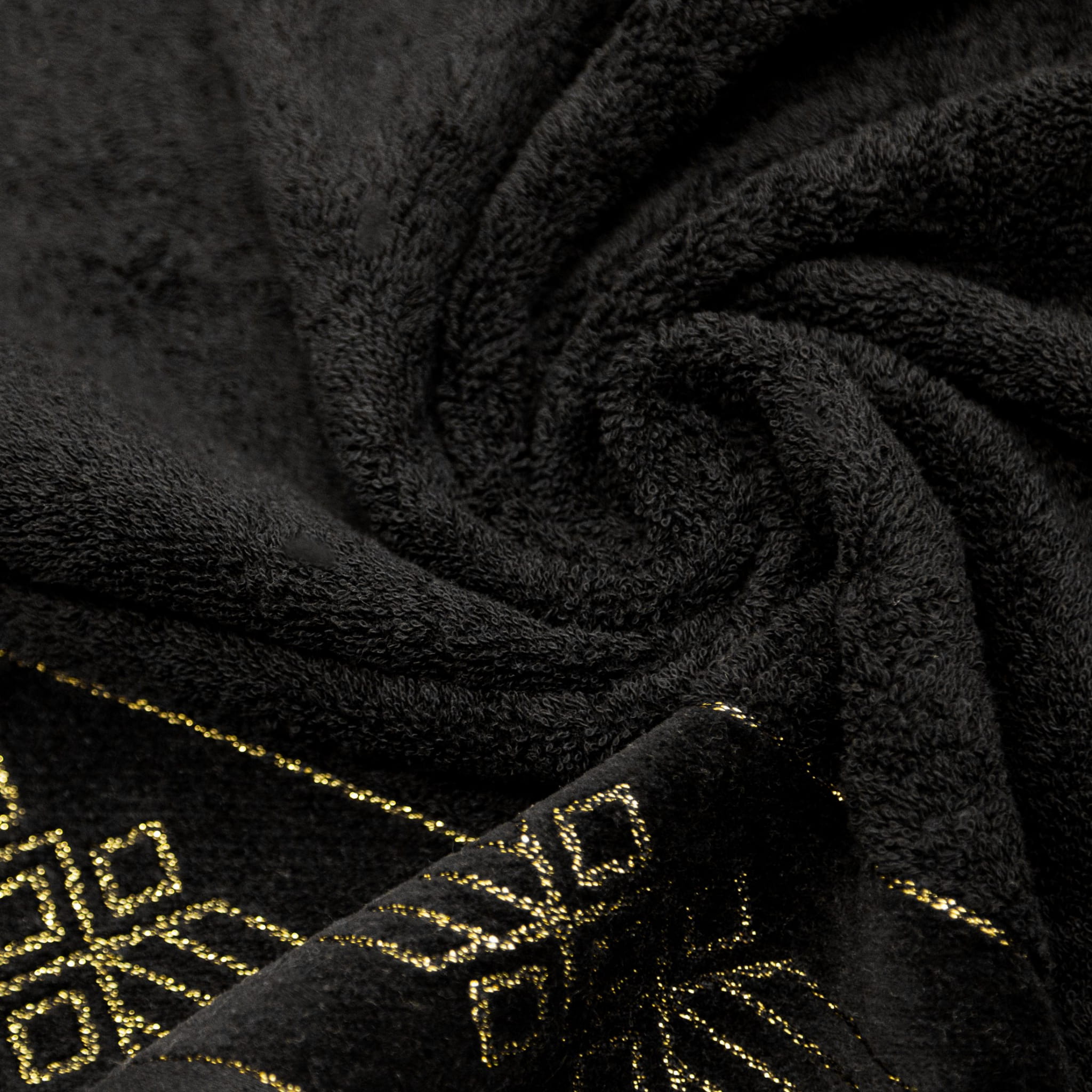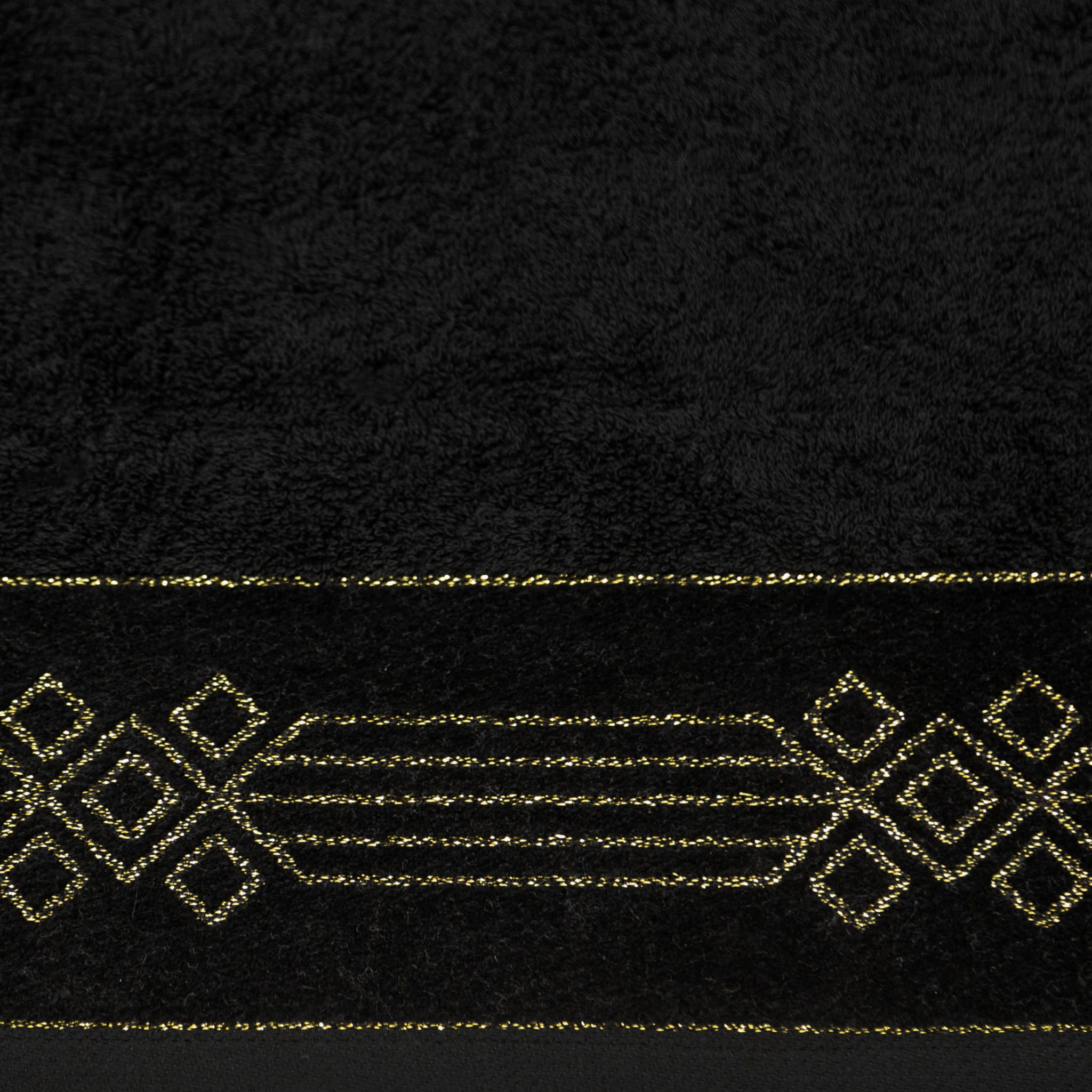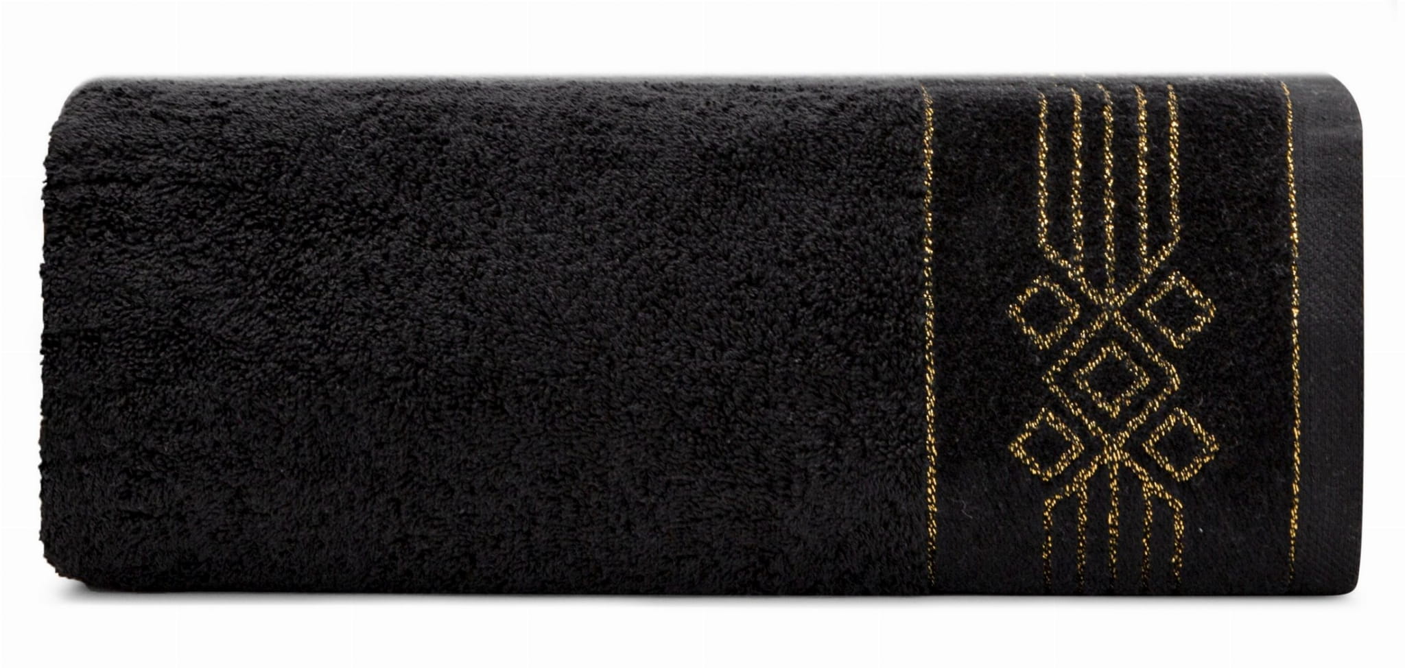 Ręcznik bawełniany Kamela w kolorze czarnym z piękną złotą, geometryczną listwą został wyprodukowany przez znaną i cenioną markę Eurofirany. Został wykonany z wysokiej jakości przędzy frotte, składającej się w 100% bawełny, która zapewnia wysokie właściwości higroskopijne czyli zdolność pochłaniania wilgoci. Charakteryzuje się wysoką i najbardziej optymalną do codziennego użytku gramaturą 520 g/m², dzięki której szybko schnie. Dodatkowo ręcznik Kamela cechuje się przyjemnym i miękkim chwytem. Elegancka, kwiatowa część ozdobna świetnie odnajdzie się w klasycznych jak i nowoczesnych wnętrzach. Z pewnością zadowolą klientów szukających wysokiej jakości w połączeniu z atrakcyjną ceną i eleganckim designem.