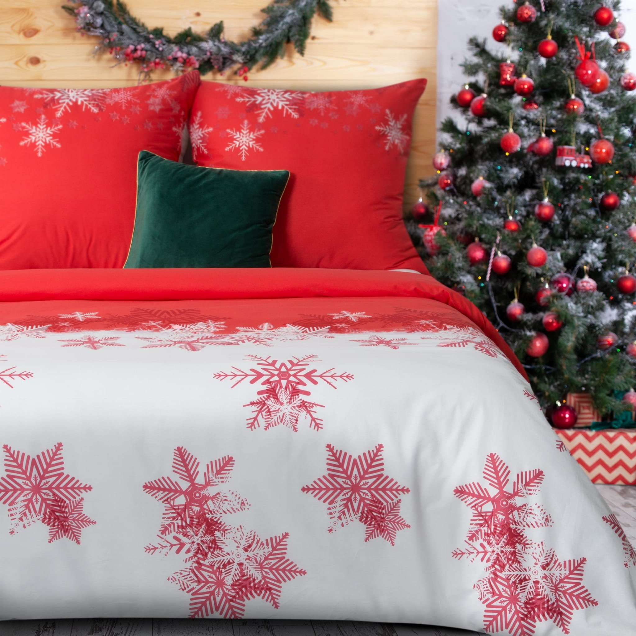 czerwono biała pościel w śnieżynki bawełniana reinforce deluxe SANTA 4 EUROFIRANY