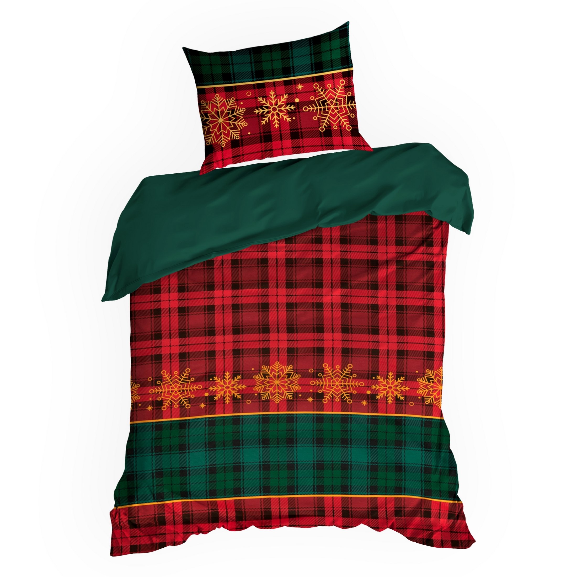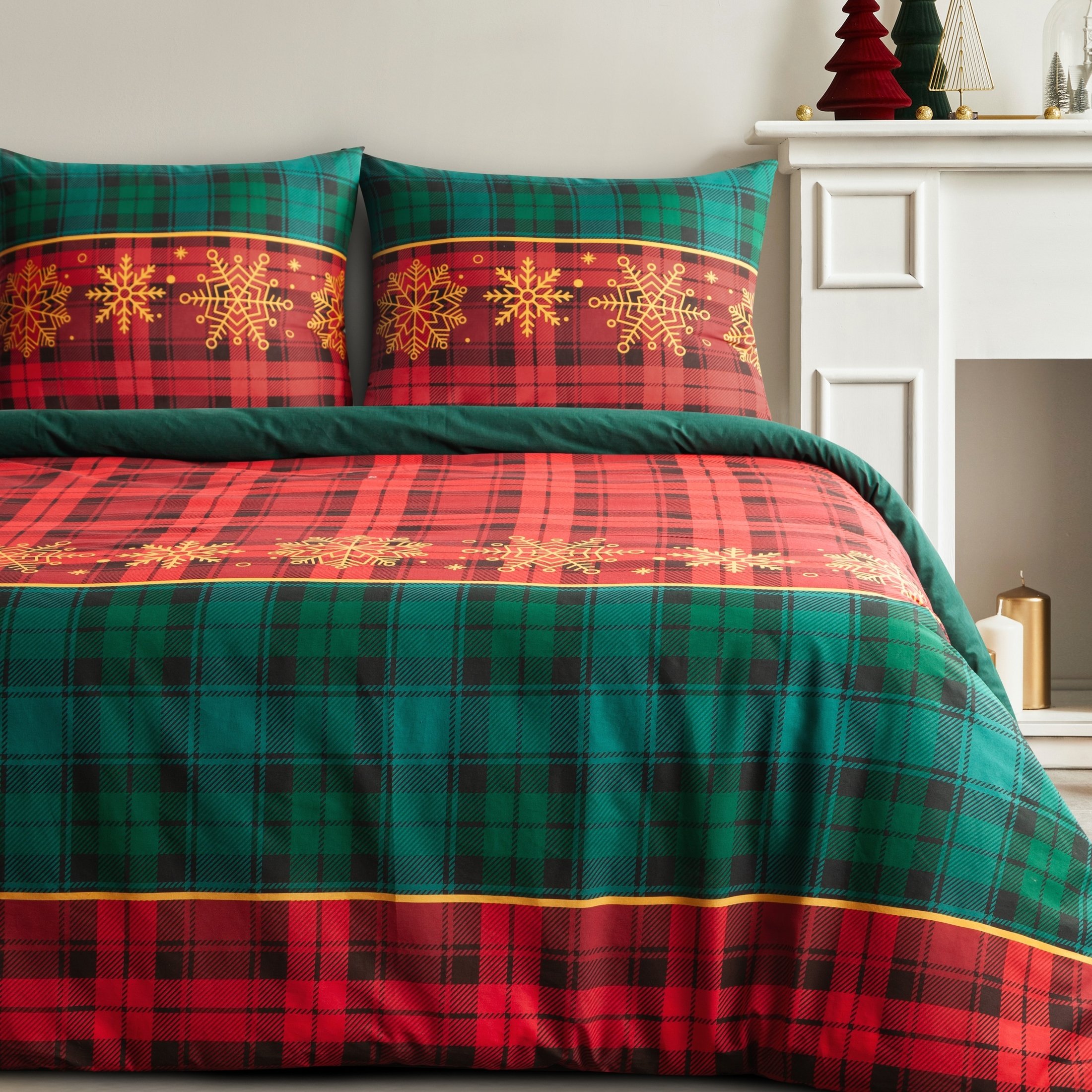 czerwono zielona krata pościel świąteczna bawełniana GLORY EUROFIRANY