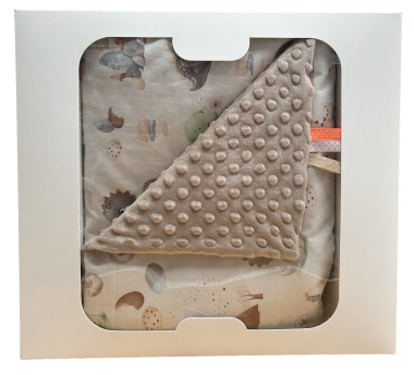 Kocyk dwustronny doskonale chroni przed zimnem, zapewnia bezpieczeństwo i komfort. Idealny do łóżeczka, wózka, fotelika dziecięcego lub jako mata do zabawy.