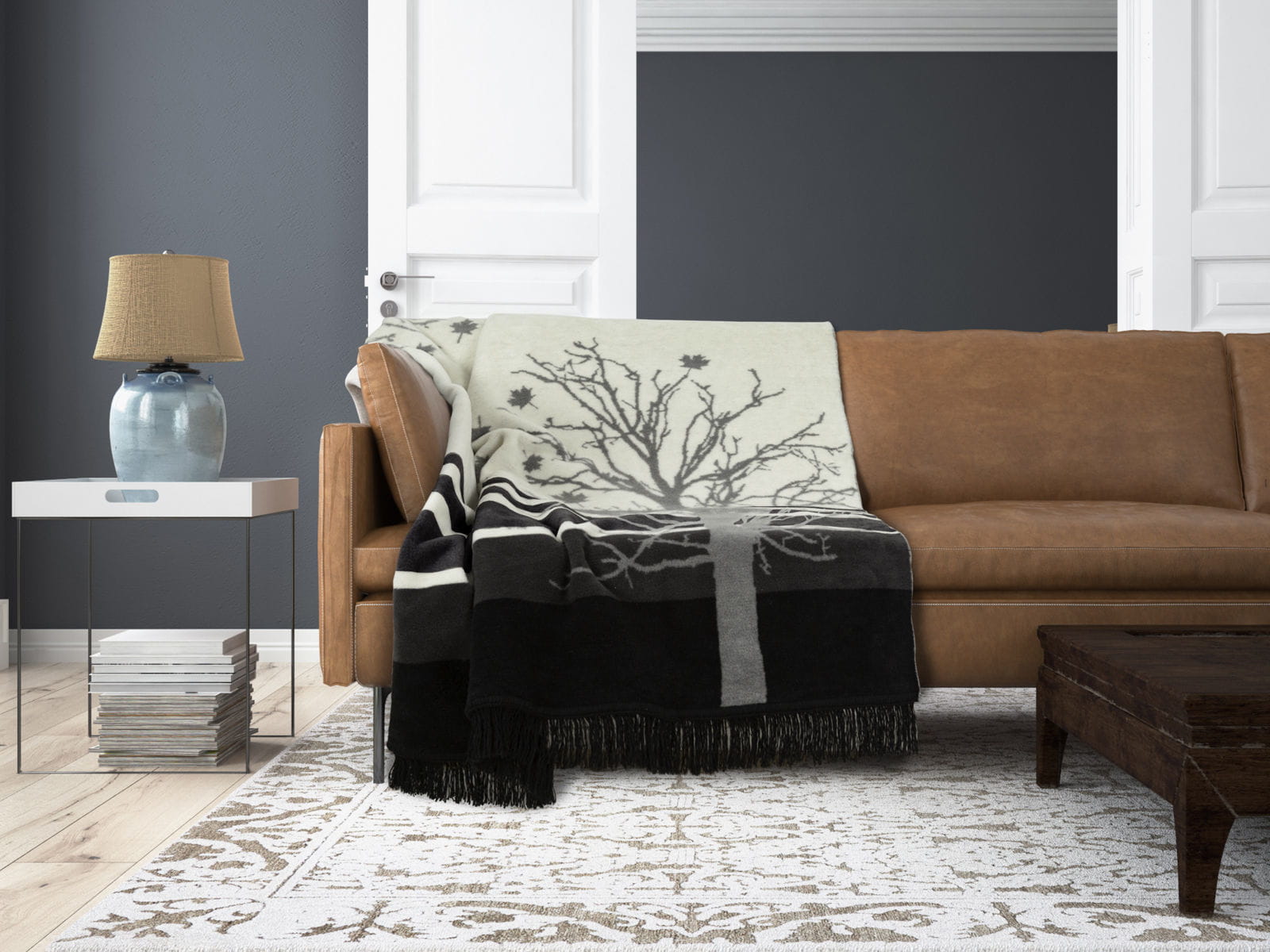 drzewo koc bawełniano akrylowy z frędzlami 150x200 MORENO MATEX
