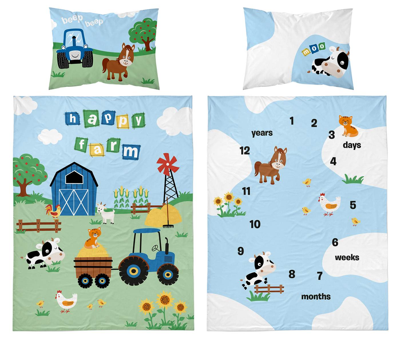 dwustronna pościel bawełniana maya moo 100x135 + 40x60 do łóżeczka 4278A