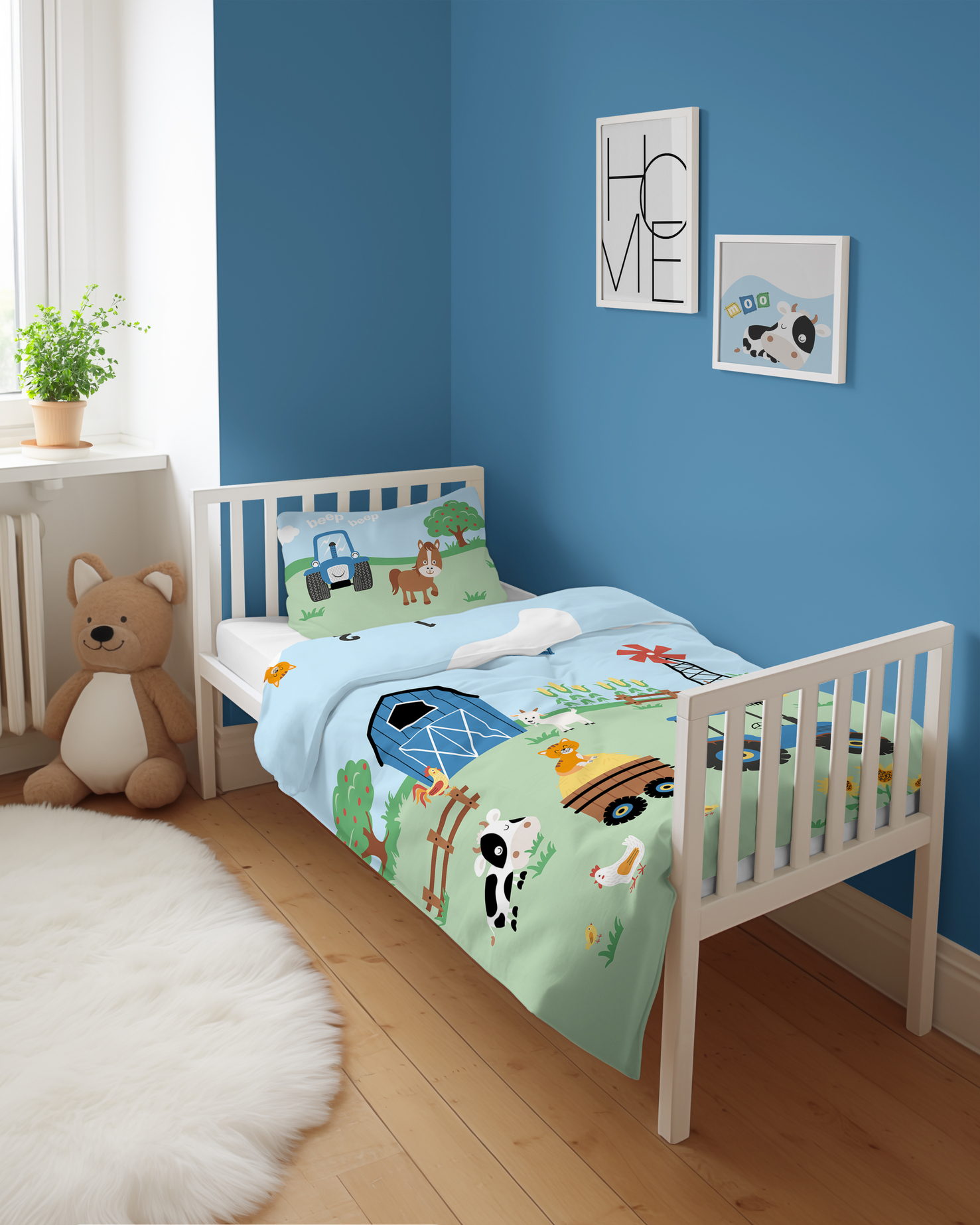 Kolorowy nadruk na pościeli wprowadzi do sypialni przyjazną atmosferę i pozwoli dziecku cieszyć się spokojnym snem. Dodatkowo wzór pościeli jest dwustronny więc możemy wybrać w jaki sposób zaaranżujemy sypialnie. Pościel dla dzieci do łóżeczka 100x135 zapinana jest na bezpieczny i atestowany zamek błyskawiczny, który ułatwia i przyspiesza wymianę pościeli.
