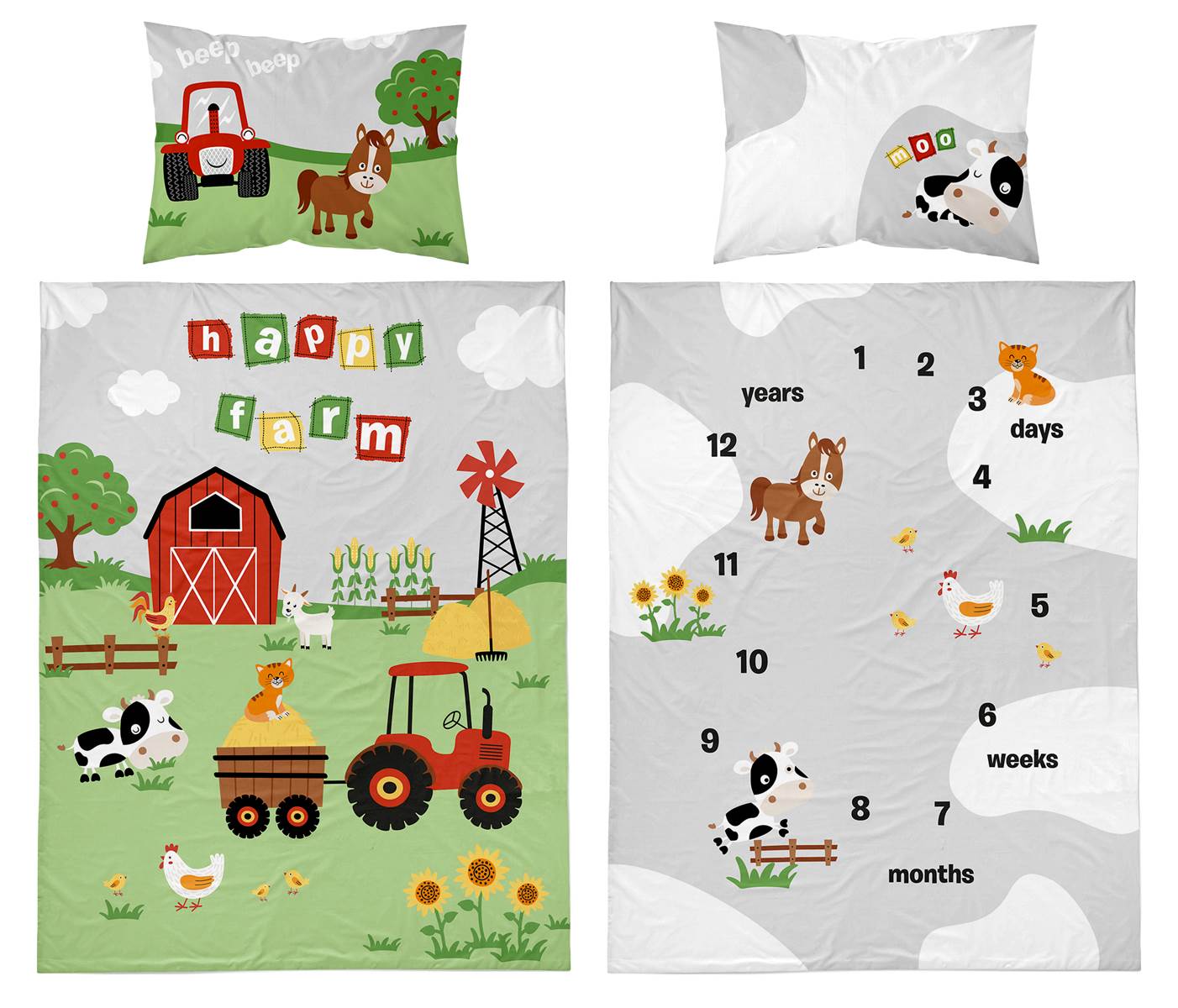 dwustronna pościel bawełniana maya moo 100x135 + 40x60 do łóżeczka 4278B