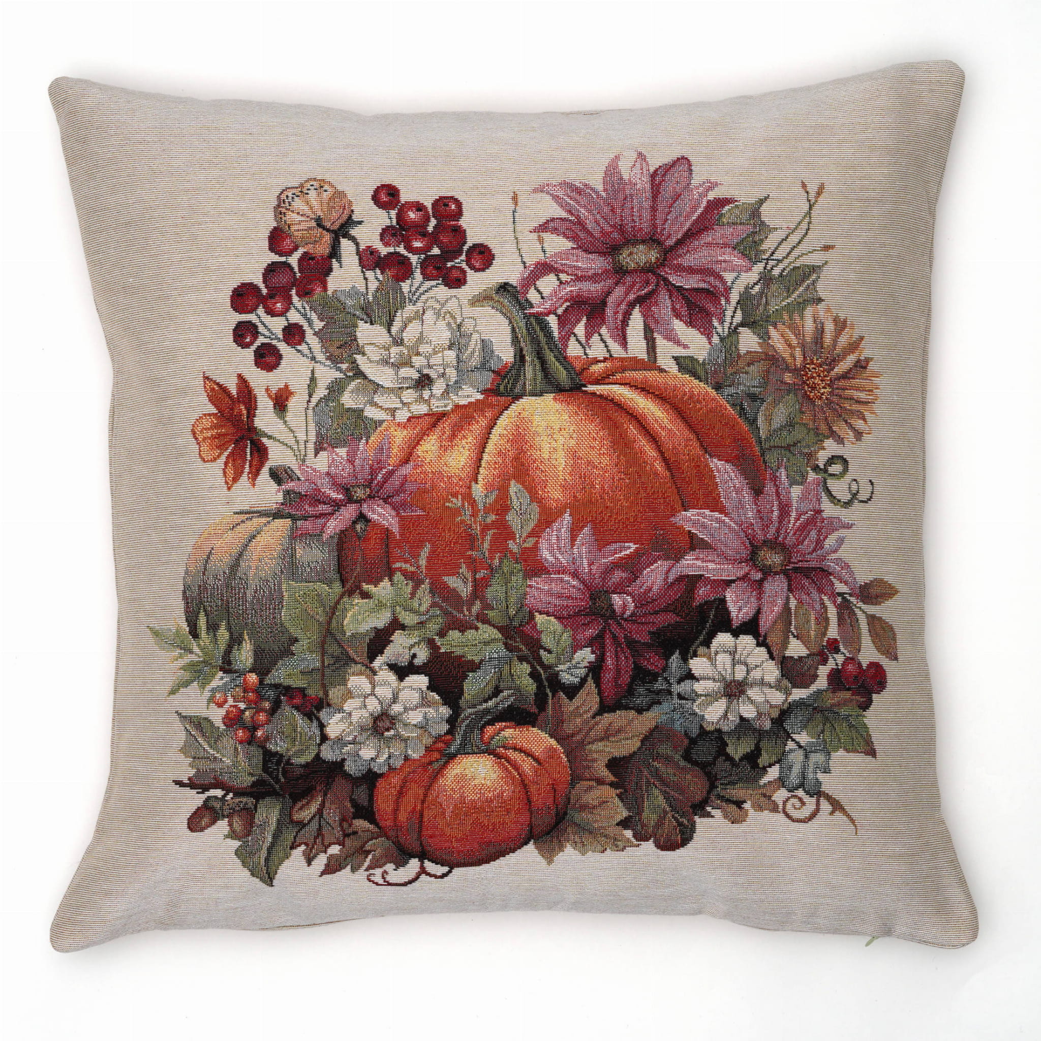 Piękna dekoracyjna poszewka Gobelin Dynia 45x45 na poduszkę elegancko ozdobi Twoje wnętrze. Zasuwana na zamek błyskawiczny. Poszewka dwustronna.