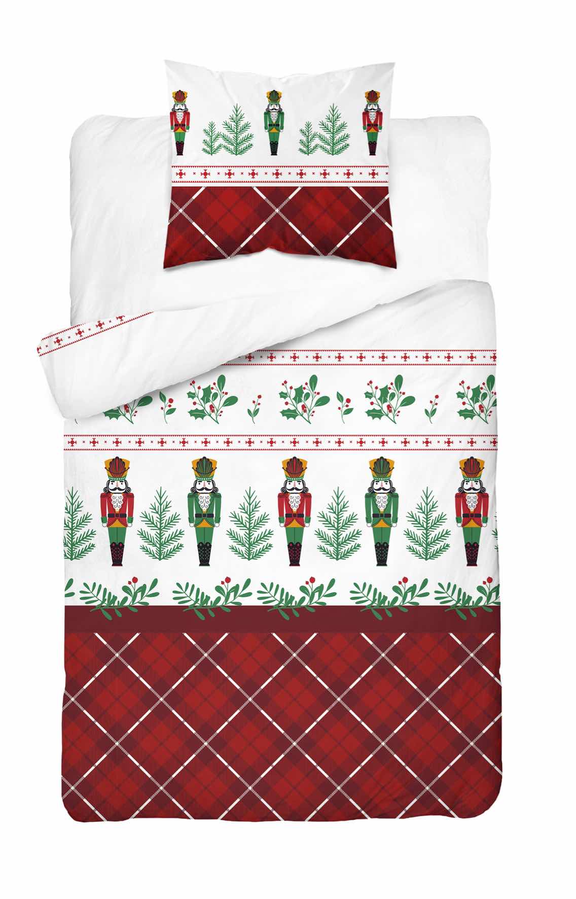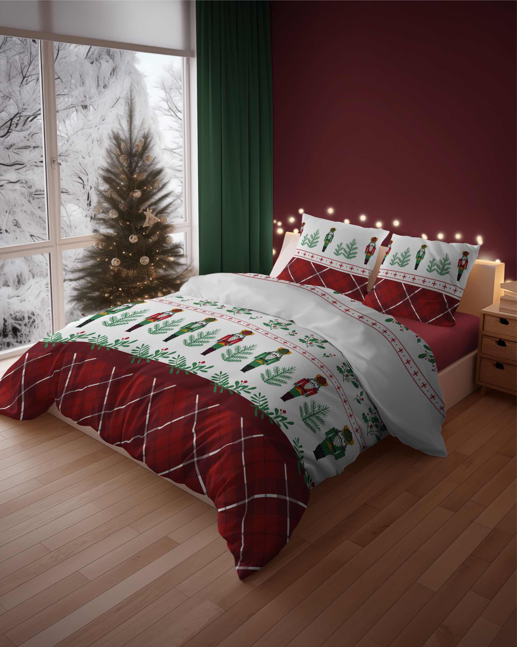 Pościel flanelowa Dziadek do Orzechów 4938A jest doskonałą propozycją na chłodne jesienne i zimowe dni. Wzór został zaprojektowany przez projektantów w modnych kolorach. Powinien zatem idealnie komponować się w nowoczesnych sypialniach. Z pewnością taki komplet pościeli doda wiele ciepła i uzupełni wystrój w naszej sypialni. Pościel zimowa ogrzeje podczas chłodów ponieważ flanela to tkanina, która jest bardzo miękka i niezwykle przyjemna w dotyku dlatego tak dobrze sprawdza się podczas chłodnych nocy. Podwójny proces drapania tkaniny zapewnia komfort cieplny i przyjemność w kontakcie z ciałem. Pościel z flaneli produkowana jest z wysokiej jakości przędz czesanych, które sprawiają, że tkanina ma jednorodną powierzchnię i estetyczny wygląd. Dzięki wykonaniu w 100% z naturalnych włókien bawełnianych gwarantuje nam wysoki komfort snu oraz cyrkulację powietrza. Dokładne wykończenie, dbałość o detale oraz estetyczne opakowanie składa się na wysoką jakość produktu.