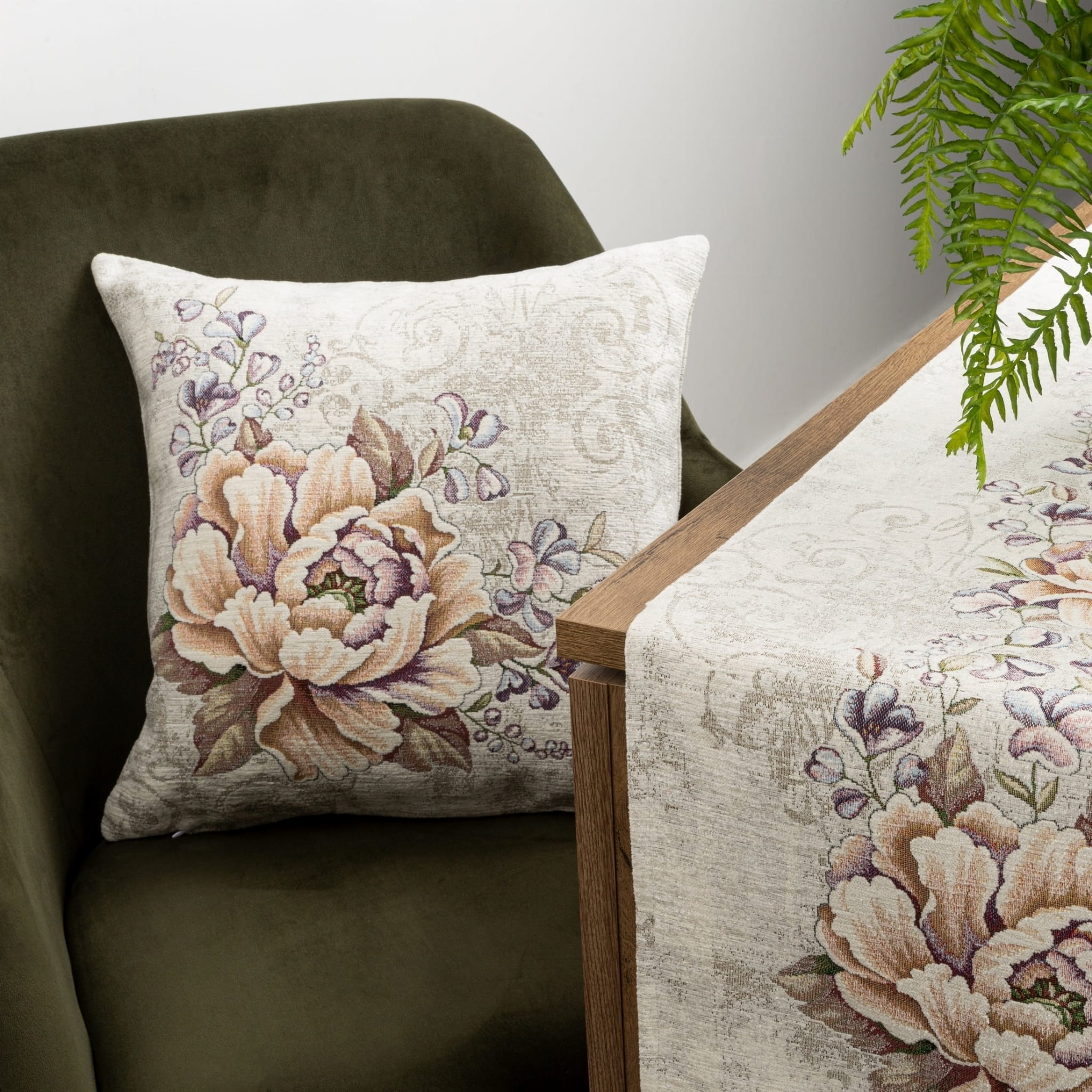 Piękna dekoracyjna poszewka Gobelin Szenilowa 1182 fioletowa 45x45 na poduszkę elegancko ozdobi Twoje wnętrze. Zasuwana na zamek błyskawiczny. Poszewka jednostronna z motywem kwiatów - z tyłu jednobarwna tkanina.