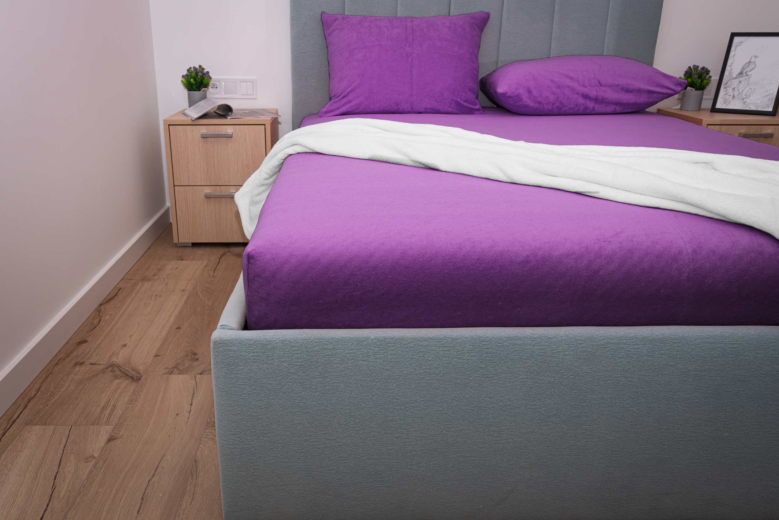 fioletowe PRZEŚCIERADŁO FROTTE Z GUMKĄ