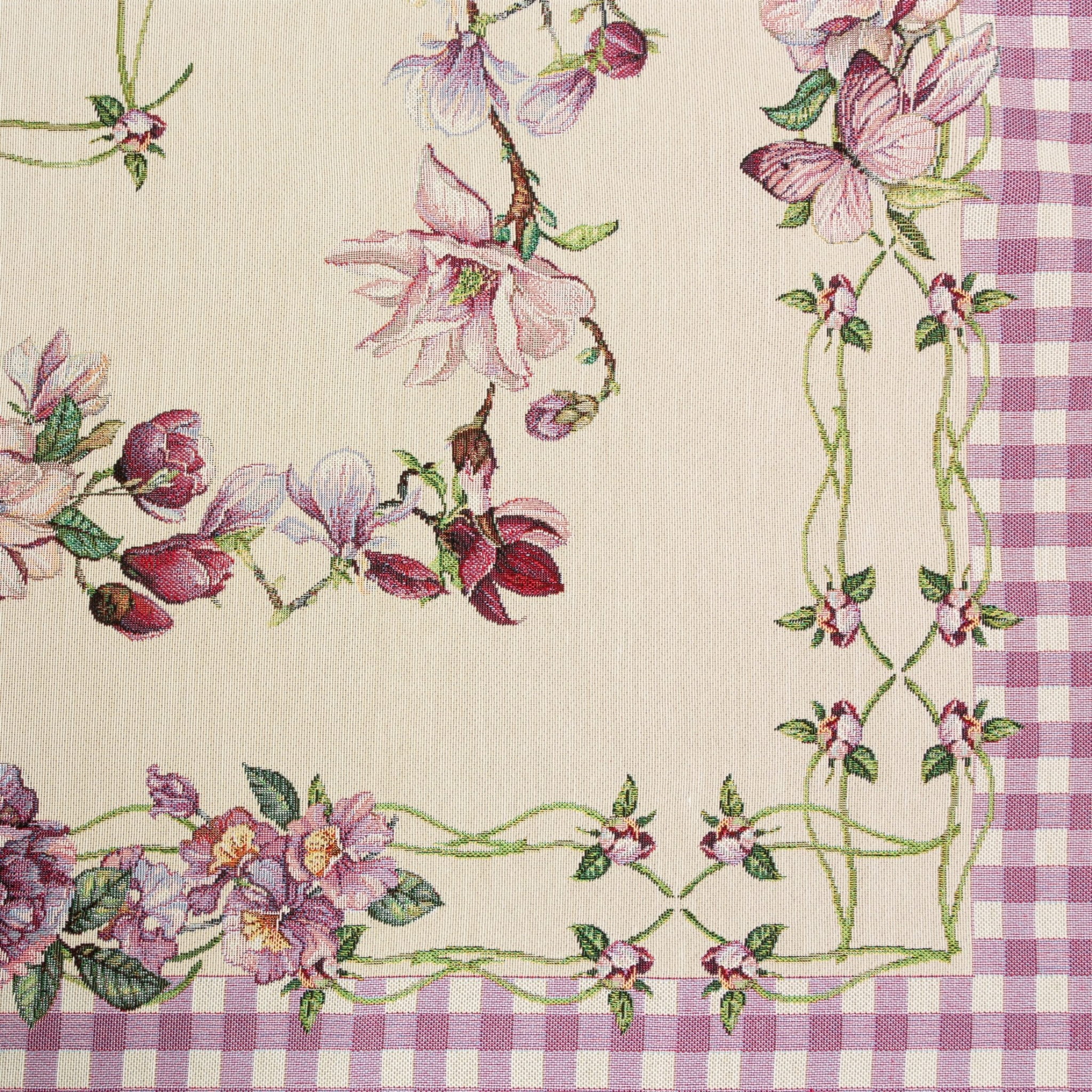 Piękny, dekoracyjny obrus Gobelinowy 1225 fioletowy z motywem kwiatów 100x100 na stół elegancko ozdobi Twoje wnętrze. Ekskluzywny bieżnik jest dopełnieniem i ozdobą każdego zastawionego stołu. Wykonany z precyzją świetnie wygląda i eksponuje każdą elegancką zastawę. Kwadrat będzie się cudownie prezentował w tradycyjnych wnętrzach, jak i w nowocześnie urządzonych pomieszczeniach.