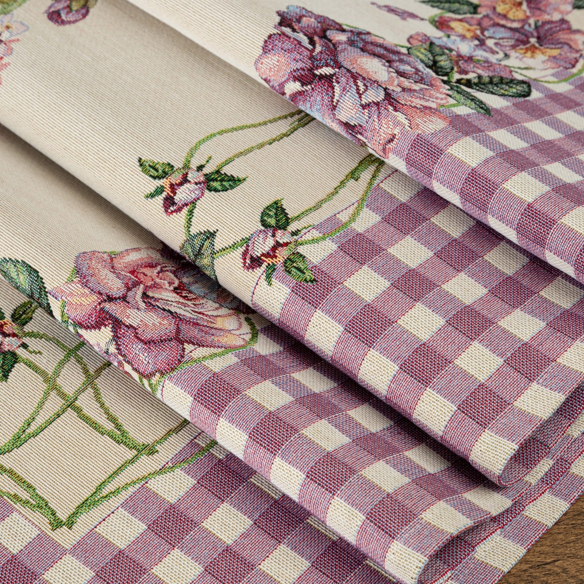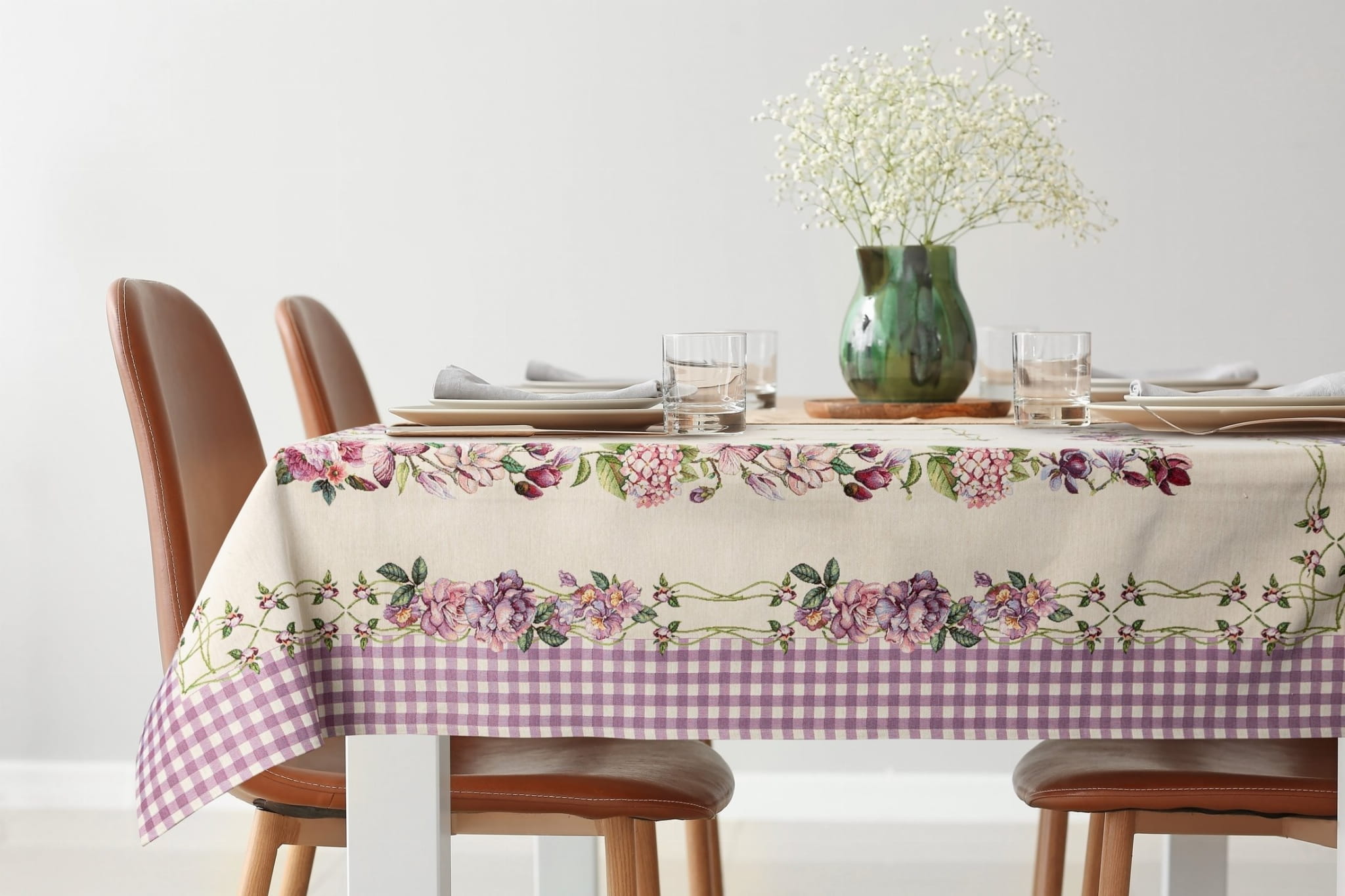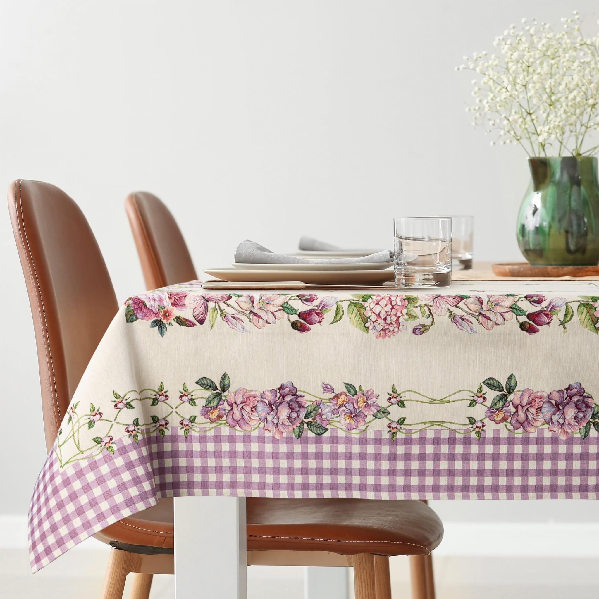 fioletowy obrus gobelin kwiaty 140x180 EUROFIRANY
