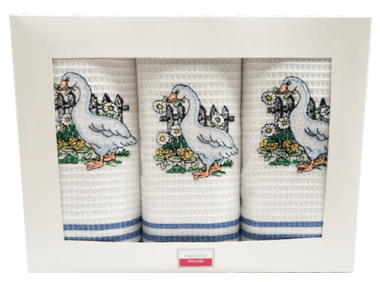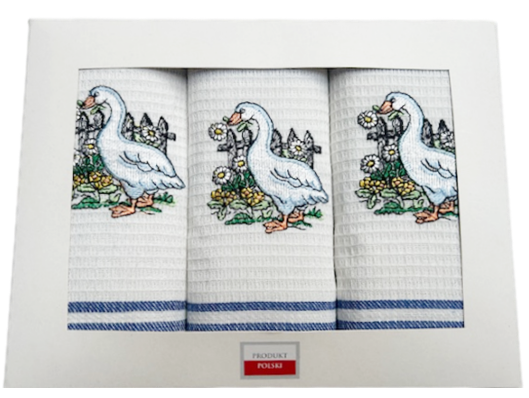 gęsi komplet ścierek kuchennych haftowanych pudełko