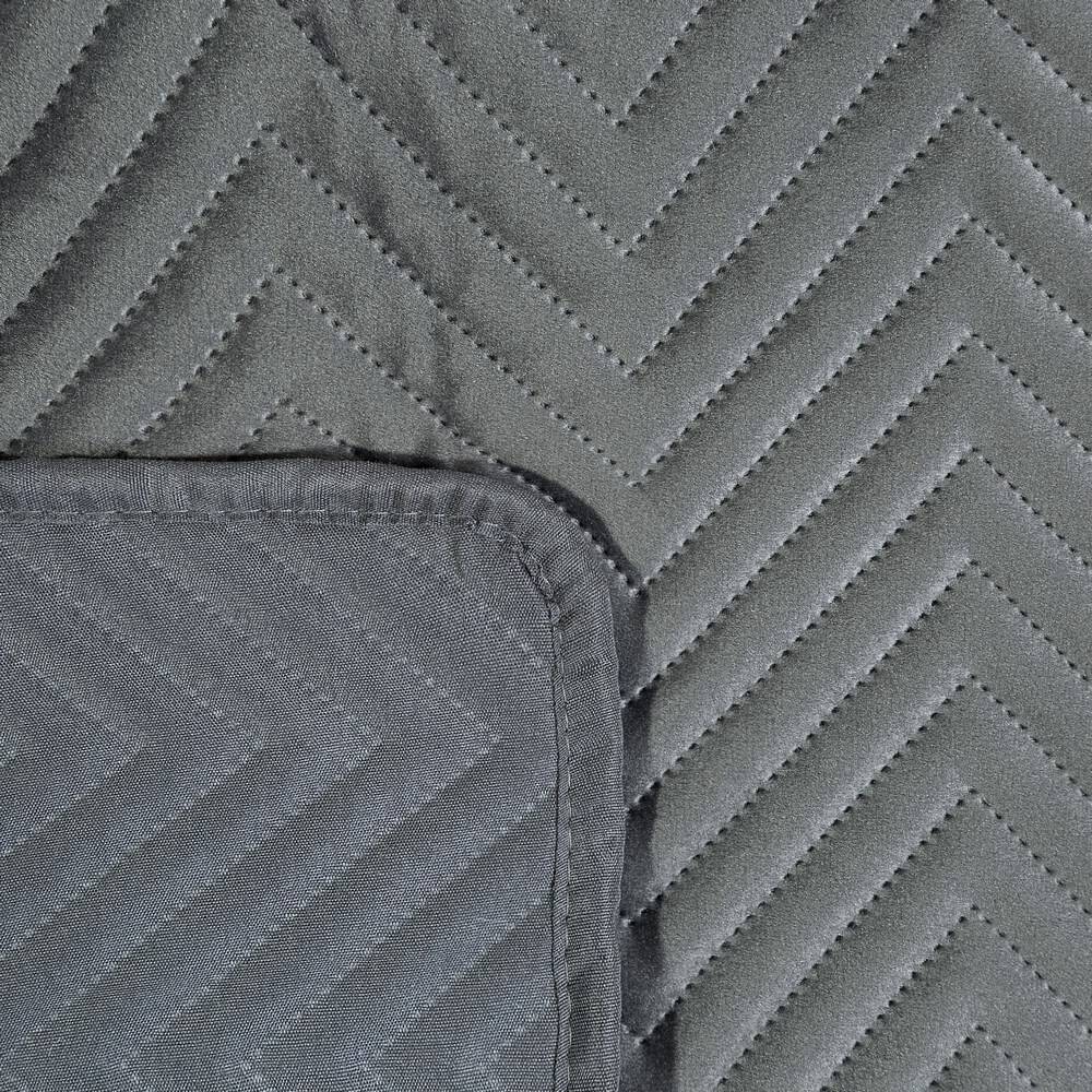 Ekskluzywna narzuta pikowana na łóżko Sofia 220x240 w kolorze grafitowym została wykonana na zlecenie firmy Eurofirany z 100% poliestru. Pełni ona nie tylko funkcję dekoracyjną w naszej sypialni elegancko prezentując się na łóżku, ale jednocześnie zabezpiecza pościel przed wybrudzeniem. Narzuta została starannie wykonana i ma jednobarwny kolor oraz posiada delikatny połysk a na brzegach obszyta jest lamówką. Eleganckie pikowanie w jodełkę zostało wykonane metodą hot press czyli bez użycia nici i igieł dlatego jej powierzchnia jest miła i przyjemna w dotyku. Pikowanie za pomocą termo-zgrzewania ma wiele zalet a największym plusem jest powstanie trwałego materiału o dużej wytrzymałości.