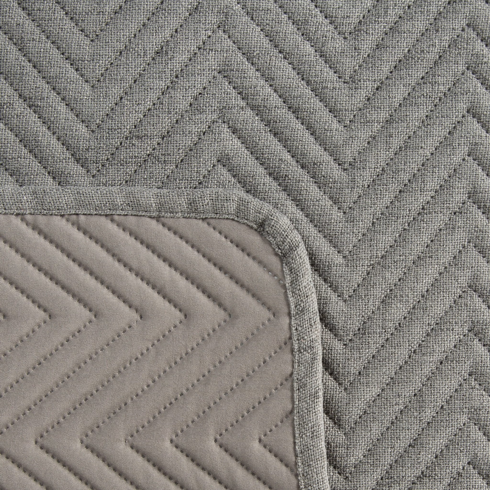 grafitowa narzuta o lnianej strukturze w jodełkę 200x220 LEN 3 EUROFIRANY