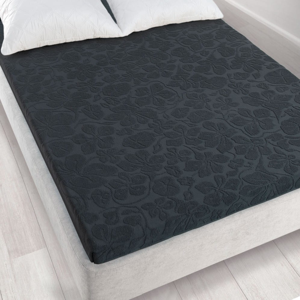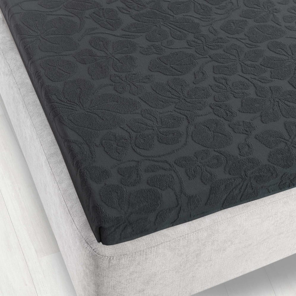 Eleganckie prześcieradło Tulipan 150x205 w kolorze grafitowym tkane techniką żakardową, wykonane z wysokogatunkowej bawełny klasycznej. Idealnie przylega do łóżka, jest miękkie i przyjemne w dotyku. Dzięki wysokiej gramaturze zapewnia maksymalny komfort snu i całą noc pozostaje na swoim miejscu. Wyróżnia je nowoczesne wzornictwo zgodne z docenianymi na całym świecie trendami tekstylnymi. Wyprodukowane w Polsce, w 100% bezpieczne dla skóry, co potwierdza międzynarodowy certyfikat jakości OEKO-TEX.