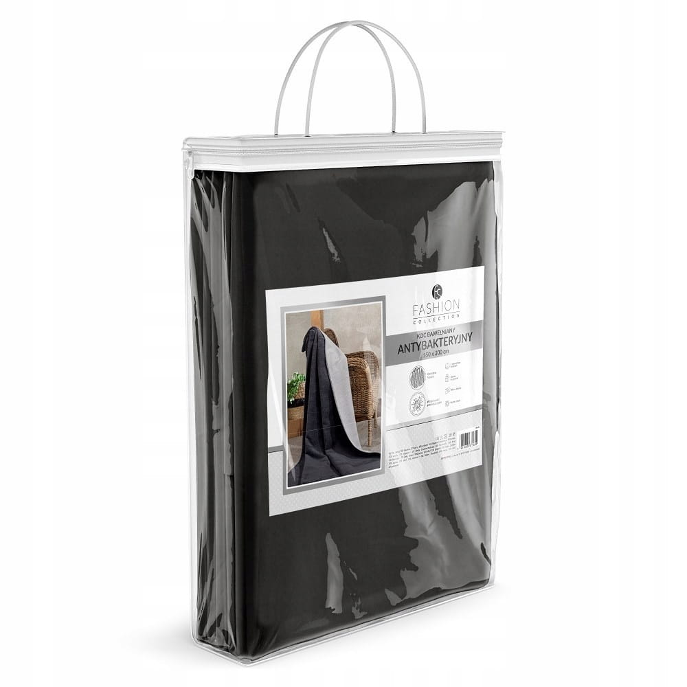 grafitowy antybakteryjny koc bawełniano akrylowy 150x200 z frędzlami fashion collection 049 JB DETEXPOL