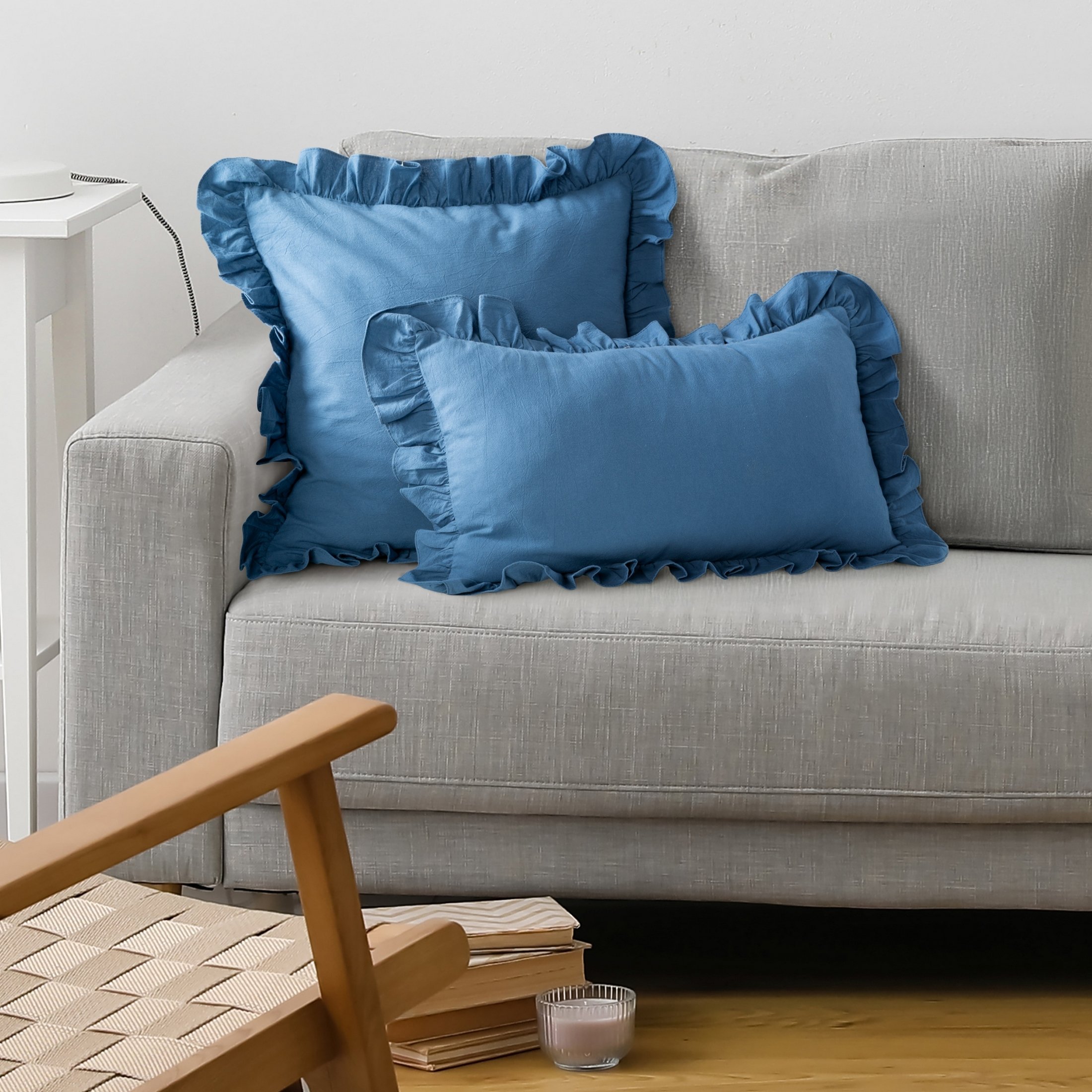 Piękna poszewka bawełniana z falbanką 30x50 w kolorze granatowym na poduszkę to doskonały wybór dla osób, które cenią naturalne tkaniny i subtelne dodatki we wnętrzu